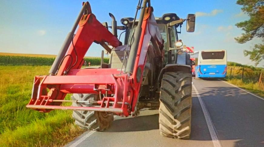 Včera před pátou hodinou odpoledne došlo mezi Újezdem u Svatého Kříže a Břasy na Rokycansku k dopravní nehodě, při které se střetl traktor s protijedoucím autobusem. "Řidič traktoru s neseným radlicovým kypřičem jedoucí po silnici II/232 ve směru na Břasy se při míjení nedržel dostatečně vpravo a přejel levým kolem do protisměru, následkem čehož došlo ke střetu s boční stranou autobusu," popsala tisková mluvčí policie.