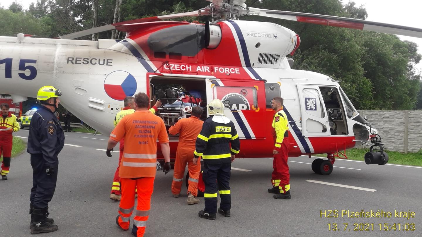 Hasiči zajistili místo havárie a provedli protipožární opatření, oba zraněné muže si do péče převzali záchranáři. "Asi pětačtyřicetiletý muž utrpěl středně těžká zranění a byl při vědomí cestou LZS transportován na Urgentní příjem Fakultní nemocnice. Druhý muž utrpěl lehčí zranění a byl transportován pozemní cestou do Stodské nemocnice," uvedla tisková mluvčí záchranářů.
