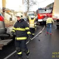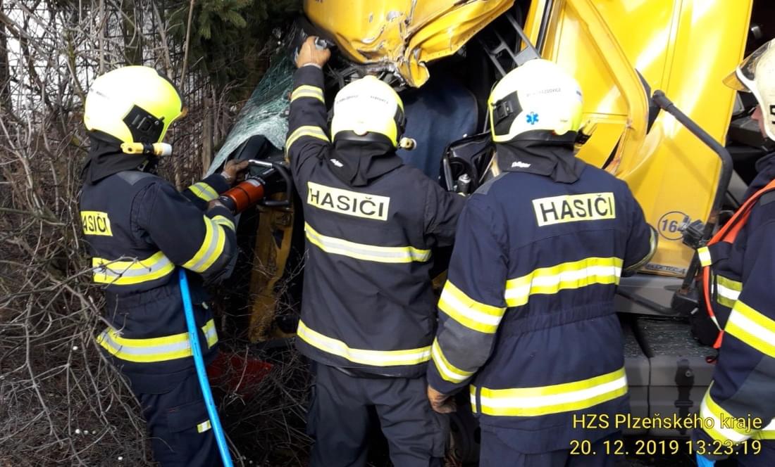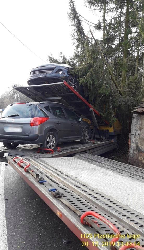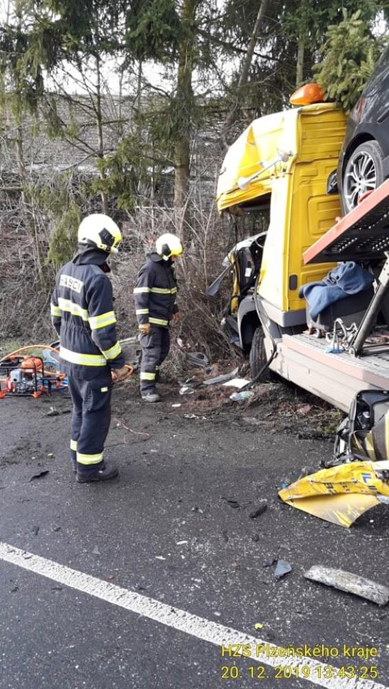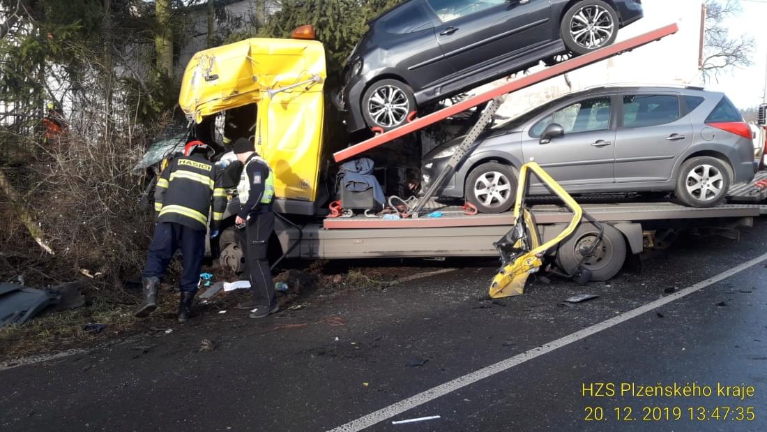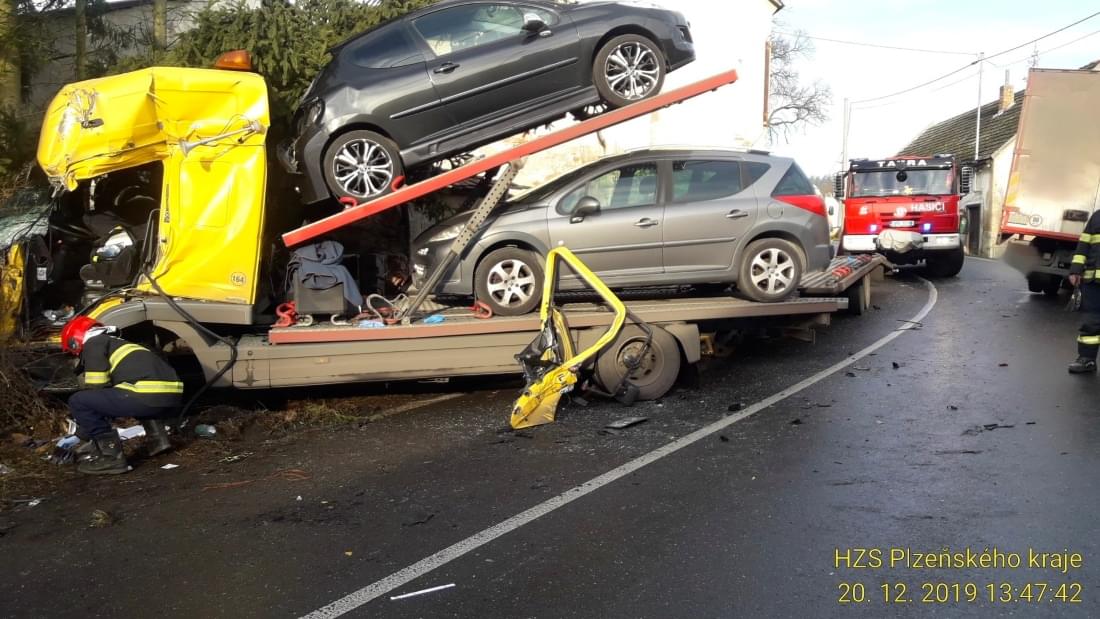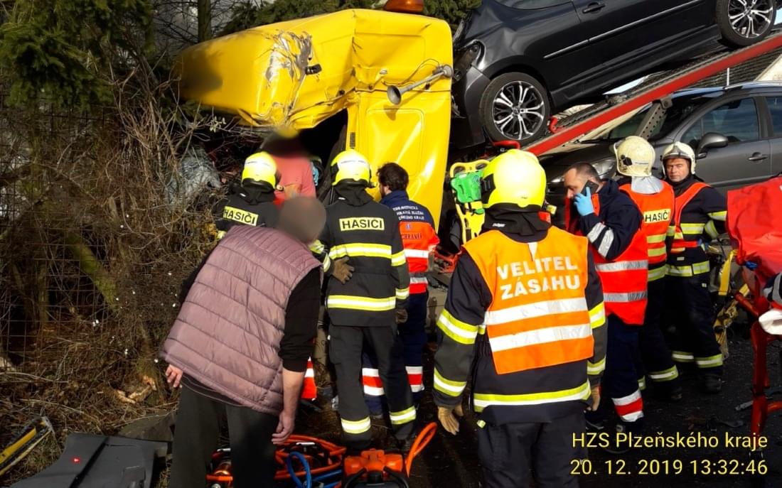 Na místo vyjely všechny záchranné složky, řidiče vozu převážejícího osobní automobily museli hasiči ze zdemolované kabiny vyprostit pomoci hydraulického zařízení. Následně si ho do péče převzali záchranáři.