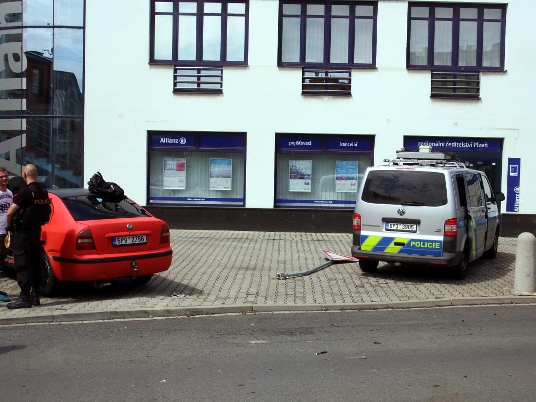 Řidič na jejich výzvu nereagoval zastavením, ale zvýšením rychlosti a snahou ujet, kdy z Karlovarské přes Rondel odbočil do ulice Otýlie BenÍškové, poté do Malické, Pod Všemi svatými a přes ulici Na Roudné se vrátil do ulice Otýlie BenÍškové, kde v plné rychlosti proletěl křižovatkou do Lochotínské ulice. Tam ale jeho snaha policistům ujet, při které ohrožoval všechny ostatní účastníky silničního provozu, skončila, protože další policejní vůz se k pronásledování připojoval právě touto ulicí. Řidič podle svědků ještě chtěl odbočit na parkoviště nákupního centra Kaufland, ale ve vysoké rychlosti manévr nezvládl a došlo ke střetu s policejním vozem. Po něm byl ujíždějící vůz odražen na chodník, kde srazil dopravní značku.