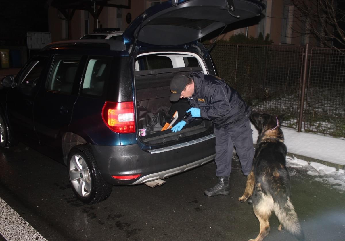 Úspěch se dostavil v Trstěnicích, kde celníci zastavili vozidlo Škoda Yeti řízené 45letým mužem. Na reakci psa bylo zřetelně vidět, že drogy ve vozidle cítí. Pes se opakovaně vracel na sedadlo řidiče, ale řidič tvrdil, že o drogách nic neví. Celníci tedy zahájili prohlídku vozidla, ale bez výsledku. Psovod tedy znovu vypustil psa, který se opět vrátil k sedačce řidiče a znovu ji označil.