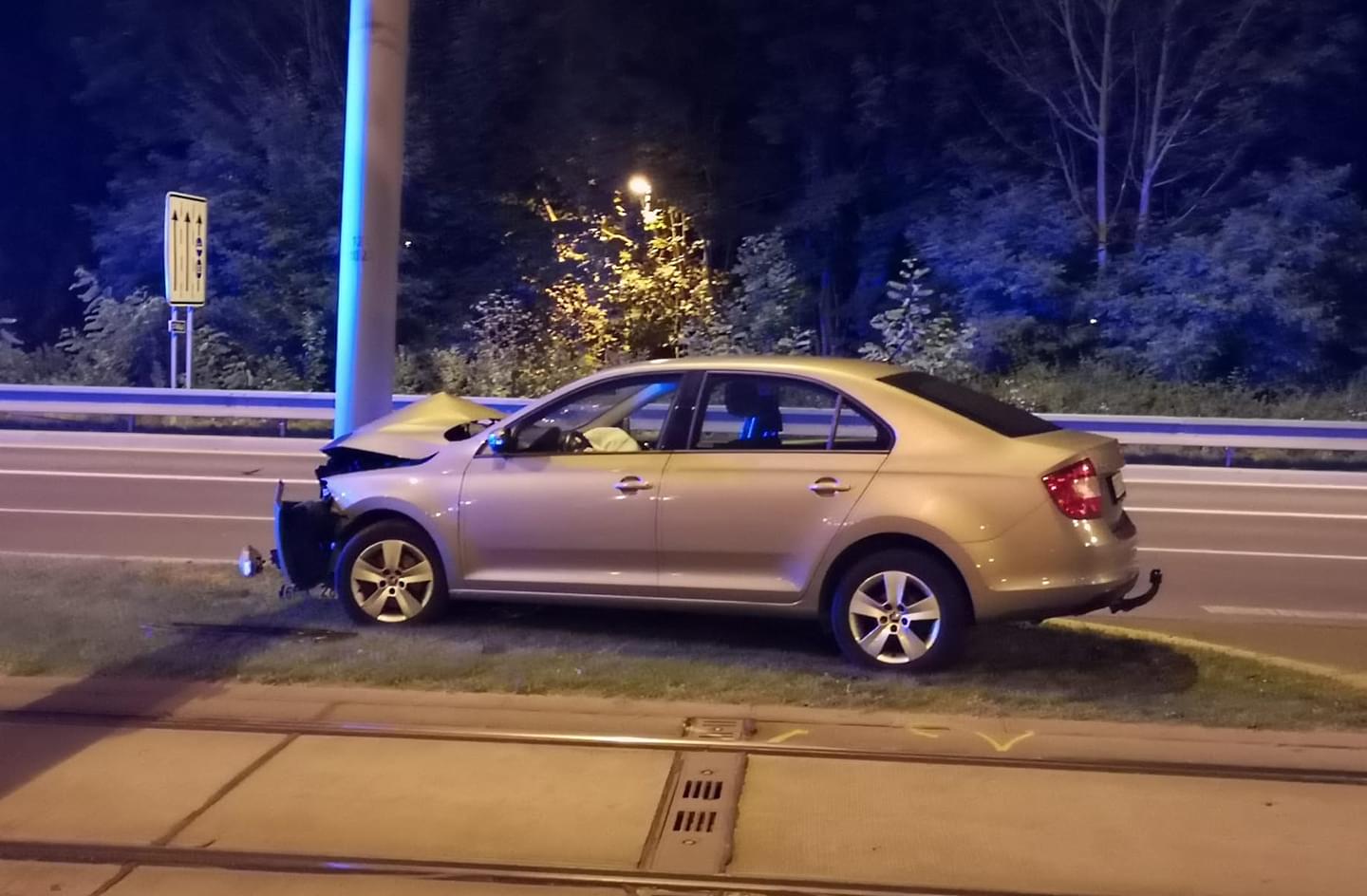 V noci na dnešek po půl čtvrté ráno došlo na Karlovarské třídě v Plzni k dopravní nehodě, při které mladý řidič vozu Škoda Rapid, jedoucí ve směru do centra města, vyjel mimo vozovku na tramvajový pás, kde narazil do sloupu. Na místo vyjeli hasiči, záchranáři i policisté.