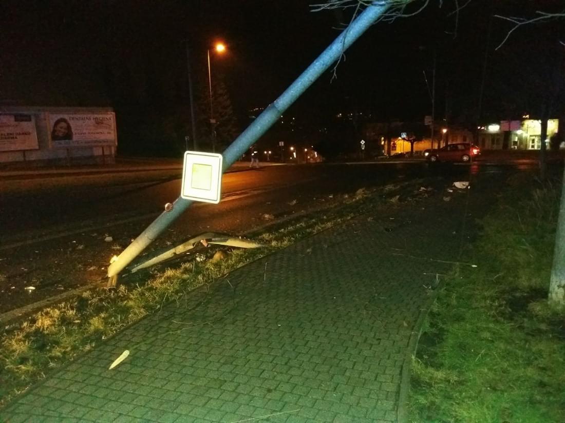 Cizinec se dvěma promile zničil lampu i Mercedes