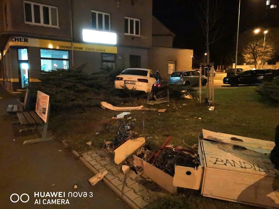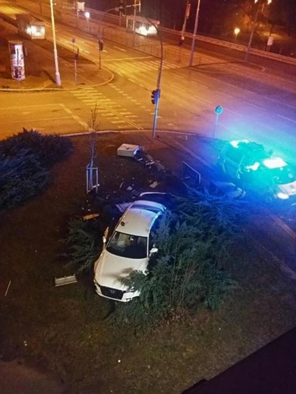 V noci po třetí hodině ráno došlo v Plzni na křižovatce Karlovarské třídy a Bolevecké ulice k havárii osobního vozu Audi. Řidička, podle našich informací Vietnamka, jela po Karlovarské třídě směrem od centra a při odbočování vpravo nezvládla řízení, vyjela s vozem ze silnice, narazila do sloupu semaforu, rozmetala elektrický sloupek a skončila v keři na trávníku.