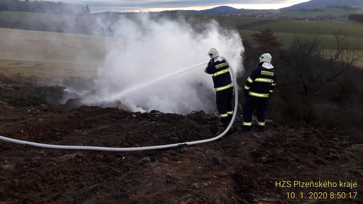 Včera večer i dnes ráno vyráželi hasiči k nelegálně založené skládce odpadu nedaleko Strýčkovic na Domažlicku. Velký problém tvoří bioodpad, tedy seno a sláma, kterou někdo navezl na zde nelegálně uložený komunální odpad.