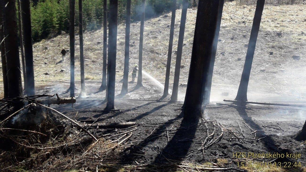 Hasiči z Horní Břízy, Plas a Košutky vyjeli k lesnímu požáru v Horní Bříze