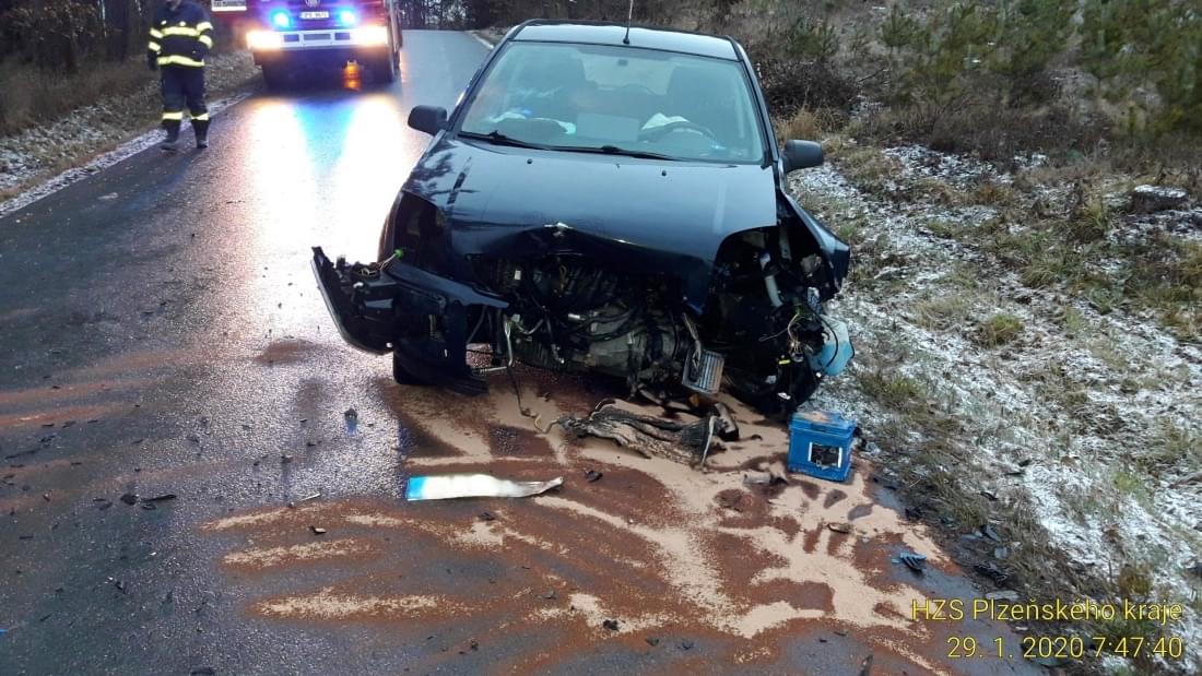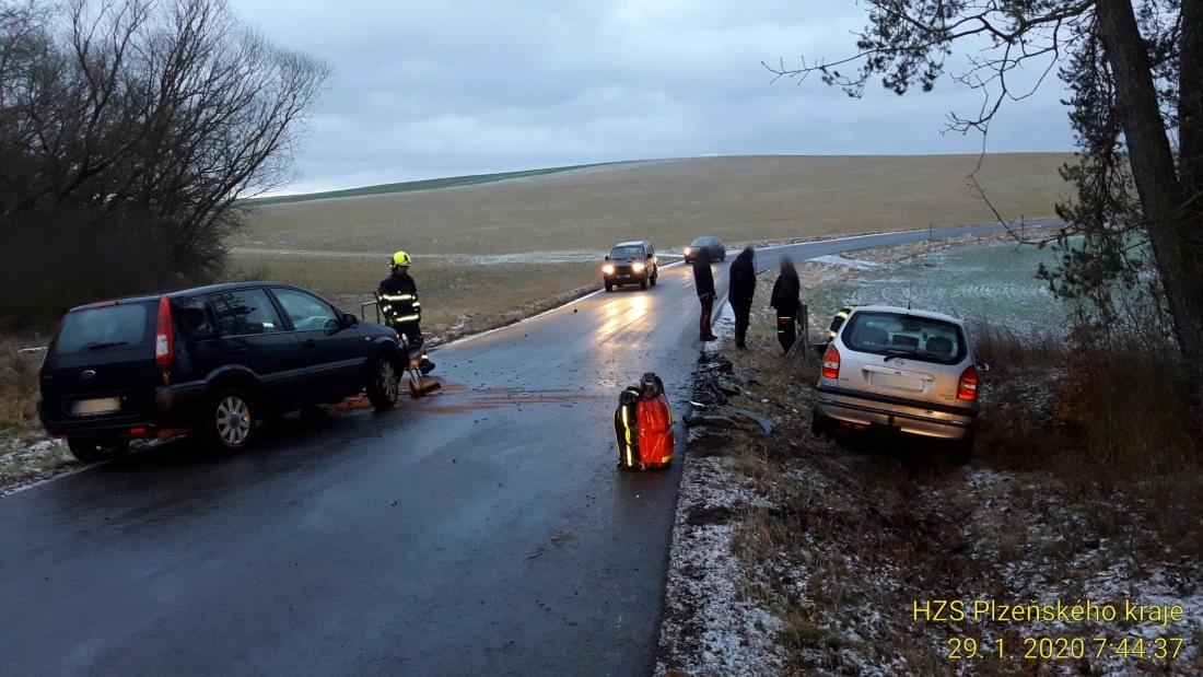 Před sedmou hodinou ráno se v ulici Politických vězňů v Holýšově v nižší rychlosti čelně střetly dva osobní vozy. Při střetu utrpěla zranění jedna osoba.