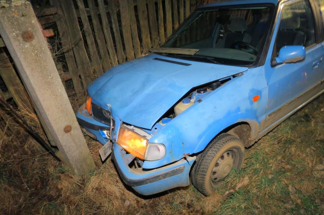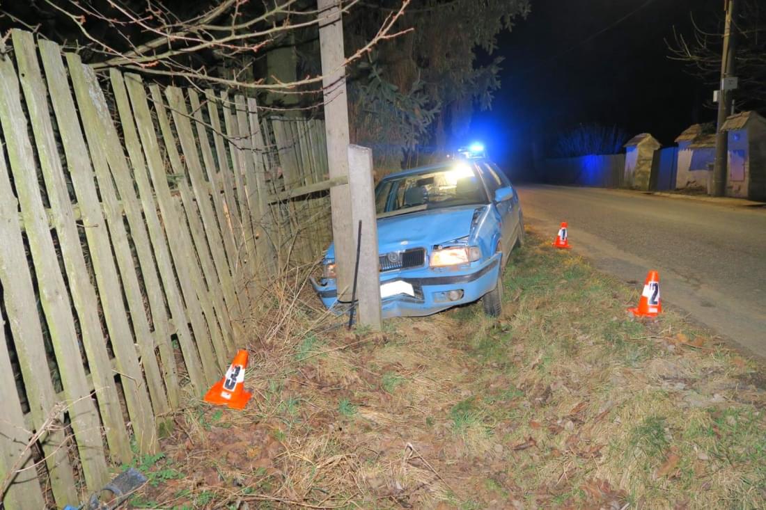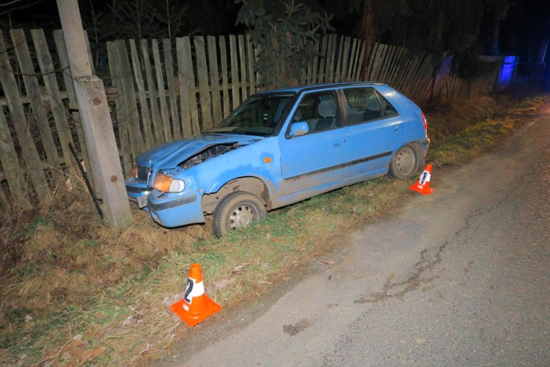 "Šestadvacetiletý řidič osobního automobilu Škoda Felicia jedoucí ve směru do obce Svržno na obec Holubeč při průjezdu rovným úsekem sjel s vozidlem na pravou krajnici mimo pozemní komunikaci, kde narazil do sloupu telefonního vedení a dřevěného plotu," popsala tisková mluvčí policie s tím, že po dopravní nehodě řidič z místa dopravní nehody odešel.