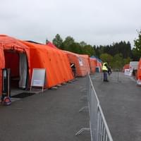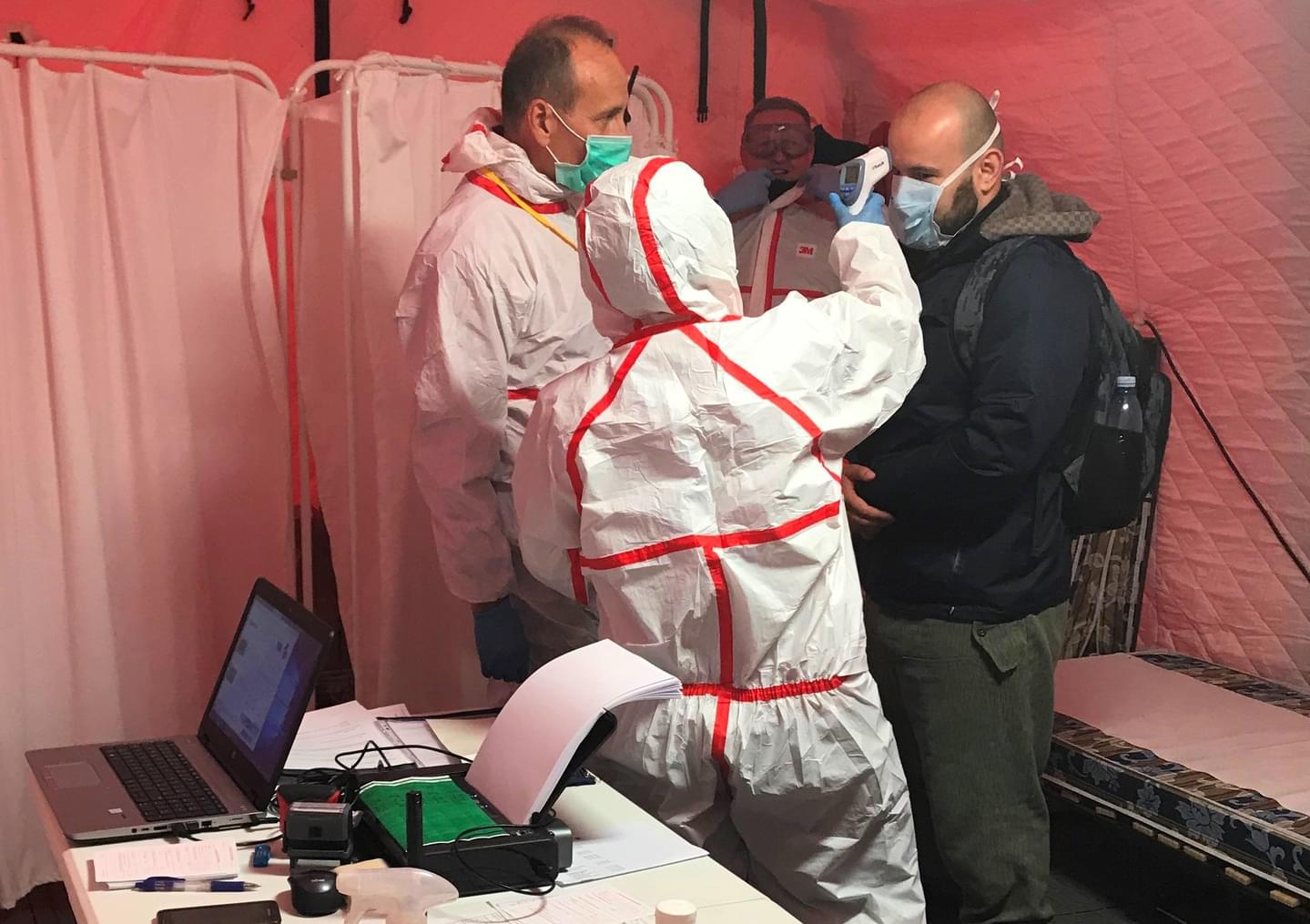 vybudovaném záchranném stanovišti přímo na státní hranici byli lékaři,