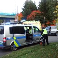 Cyklista při pádu utrpěl zranění a na místo tak krom policistů vyrazili i záchranáři, naštěstí se nejednalo o nic vážného a muž byl po ošetření ponechán na místě.