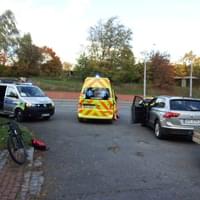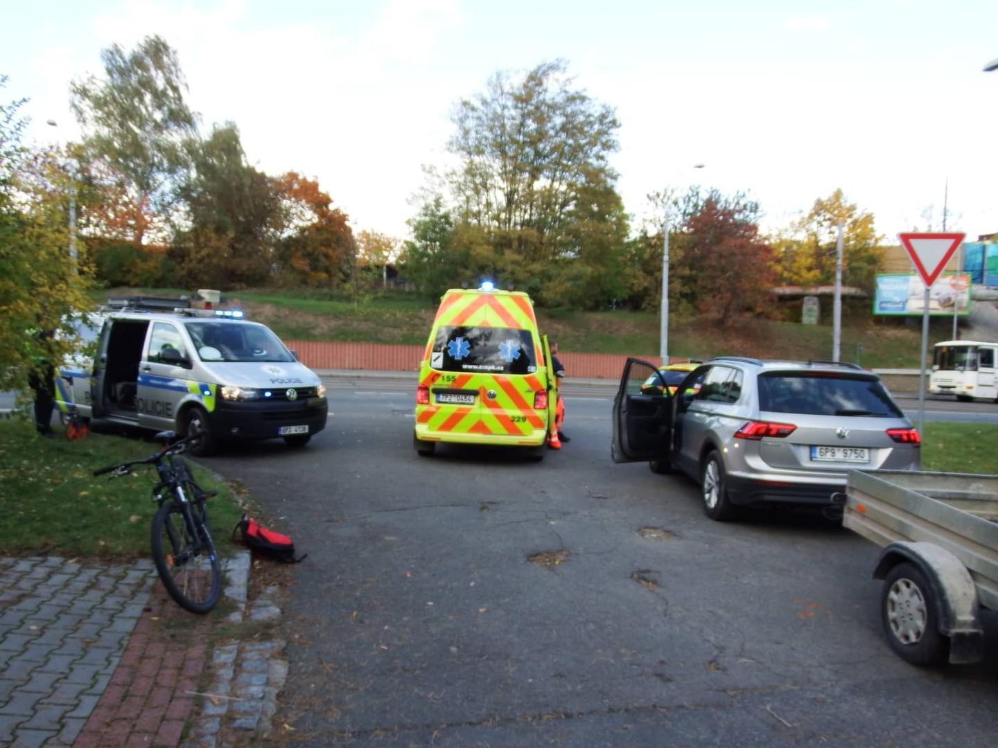 Ke střetu cyklisty s autem došlo dnes po půl třetí odpoledne na křižovatce Vejprnické ulice a Slovanského údolí.