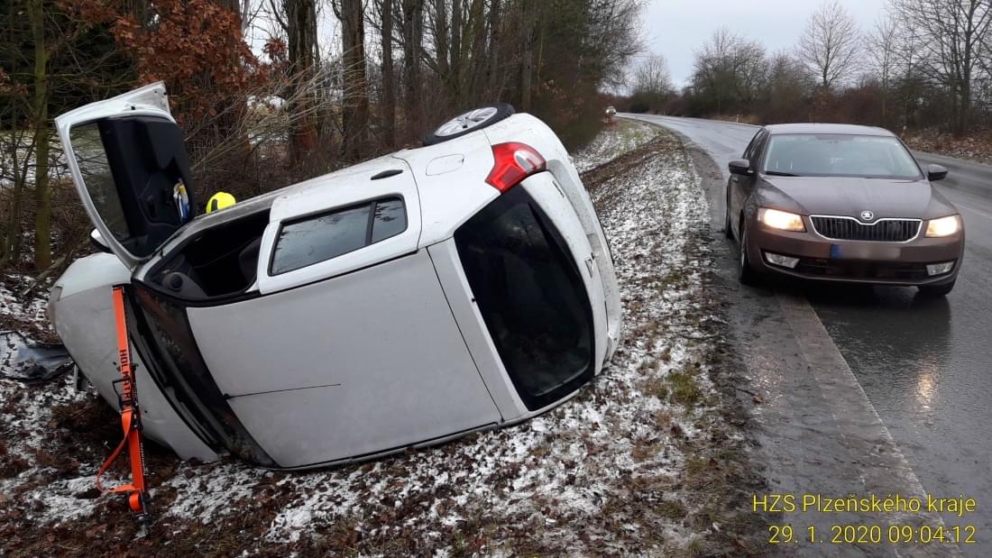 Před devátou hodinou ráno došlo k havárii osobního vozu Dacia na silnici č. 180/II mezi Robčicemi a Štěnovicemi.