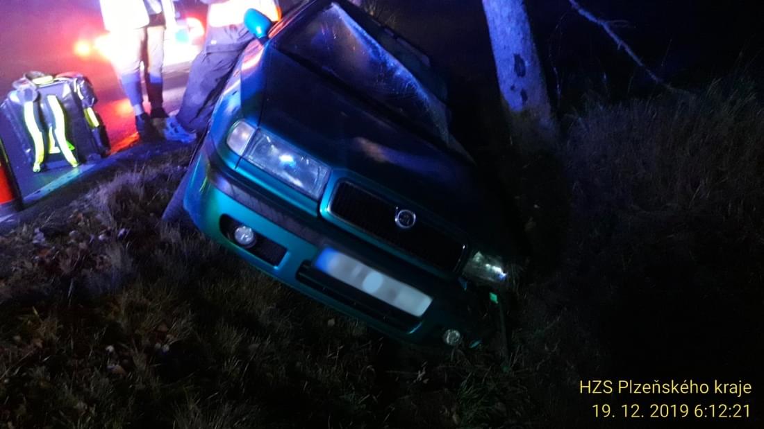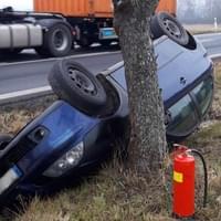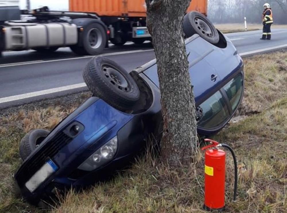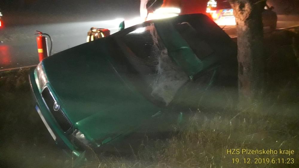 V půl jedenácté pak došlo k havárii osobního vozu s dvojčlennou posádkou mezi Spáleným Poříčím a Hořehledy, kde vůz vyjel ze silnice, převrátil se a narazil do stromu.