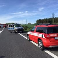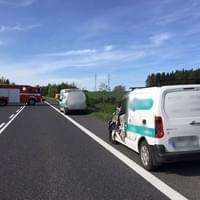 Nedaleko Příbrami, na rychlostní silnici R4, měl řidič nákladního vozu mikrospánek, přejel do protisměru a bočně se střetl s protijedoucí dodávkou.