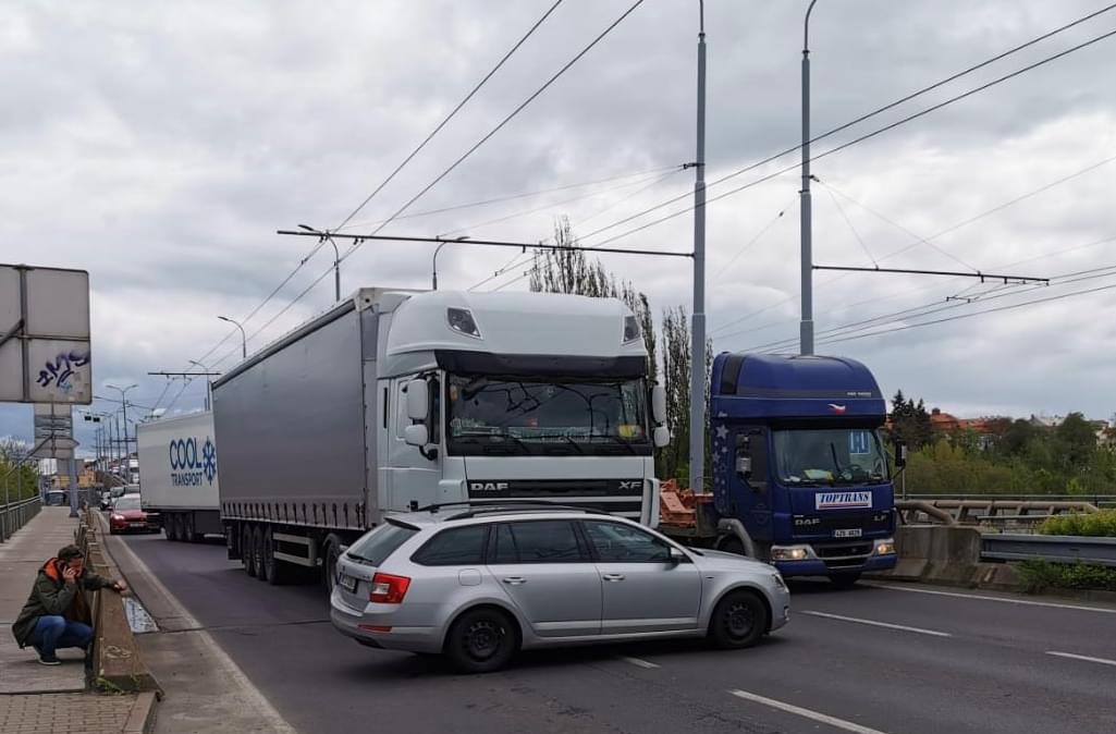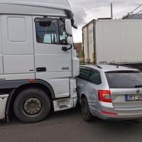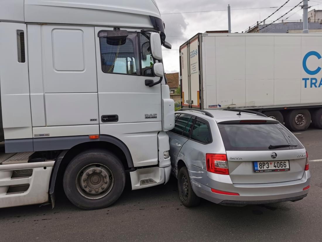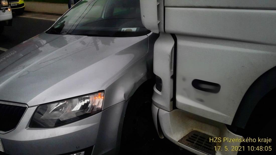 Dnes před tři čtvrtě na jedenáct došlo v Plzni na magistrále U Trati ke střetu nákladního vozu s osobním, vzhledem k tomu, že z místa bylo hlášeno zranění ženy, vyjely k nehodě všechny záchranné složky. Hasiči na místě provedli protipožární opatření a zajistili místo nehody. Záchranáři si převzali zraněnou ženu z osobního vozu, která byla podle tiskové mluvčí záchranářů vzhledem k těhotenství transportována do nemocnice k observaci.