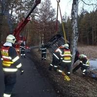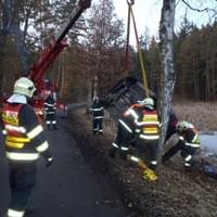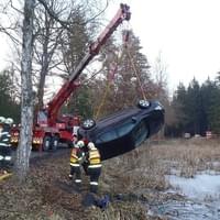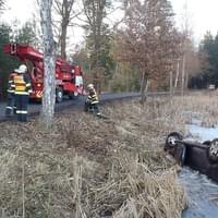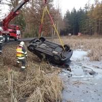 Odpoledne, před čtvrtou hodinou, zasahovali hasiči opět u vozidla v rybníce. Nyní to byli Rokycanští hasiči a bylo to za Litohlavami, ve směru na Smědčice. Při příjezdu jednotky hasičů na místo události, byla řidička, která z hrozivě vypadající nehody vyvázla bez zranění, již z vozu venku a seděla v teple ve voze policistů. Hasiči ženě poskytli deky na zahřátí. Její vozidlo na tom bylo podstatně hůře, leželo v rybníce na střeše, zhruba do poloviny zatopené vodou. Na jeho vyproštění si velitel zásahu povolal jeřáb a na místo vyjela jednotka SŽDC Plzeň s vyprošťovacím automobilem. Vozovka byla uzavřena po dobu vyprošťování.