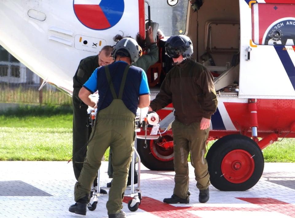 Náš redaktor čekal na přílet helikoptéry LZS v Plzni, kam chlapce preventivně letecky transportovali do fakultní nemocnice a dokonce mu záchranáři nezapomněli vzít s sebou jeho oblíbenou hračku.