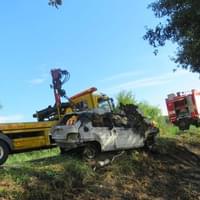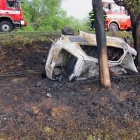 Ve snaze dostat vozidlo zpět na komunikaci dostala smyk, vyjela mimo silnici a v pravém silničním příkopu čelně narazila do stromu. Vozidlo se převrátilo na střechu a začalo hořet.