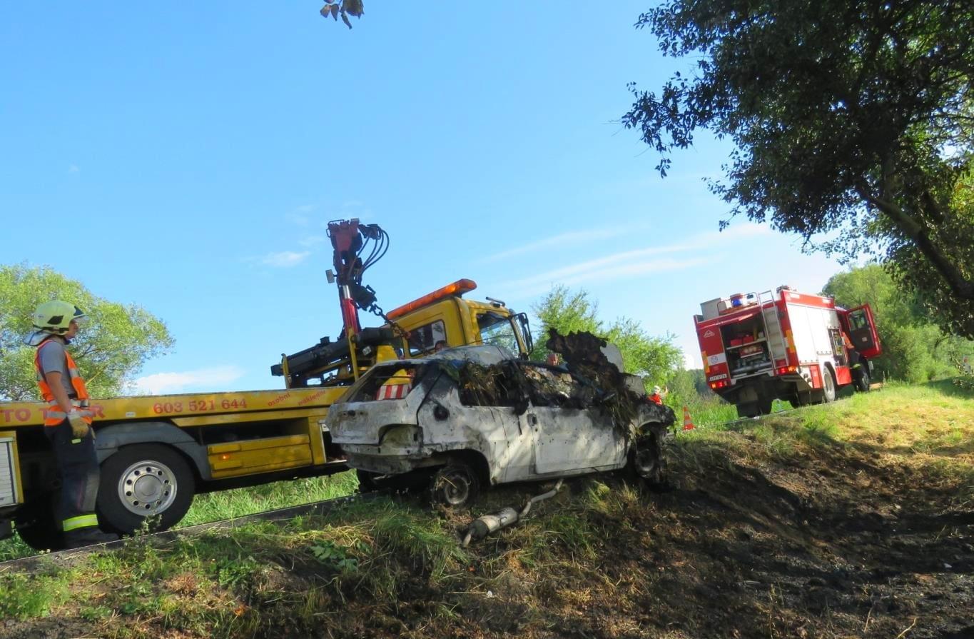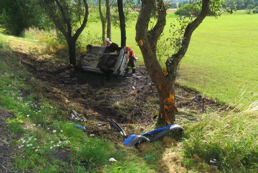 Ve snaze dostat vozidlo zpět na komunikaci dostala smyk, vyjela mimo silnici a v pravém silničním příkopu čelně narazila do stromu. Vozidlo se převrátilo na střechu a začalo hořet.