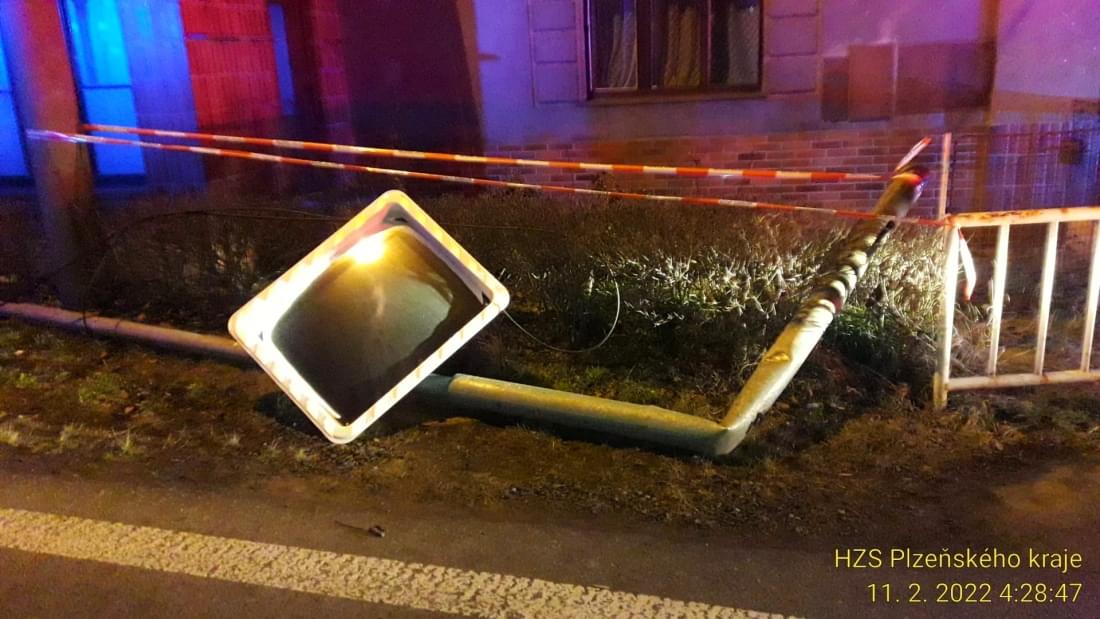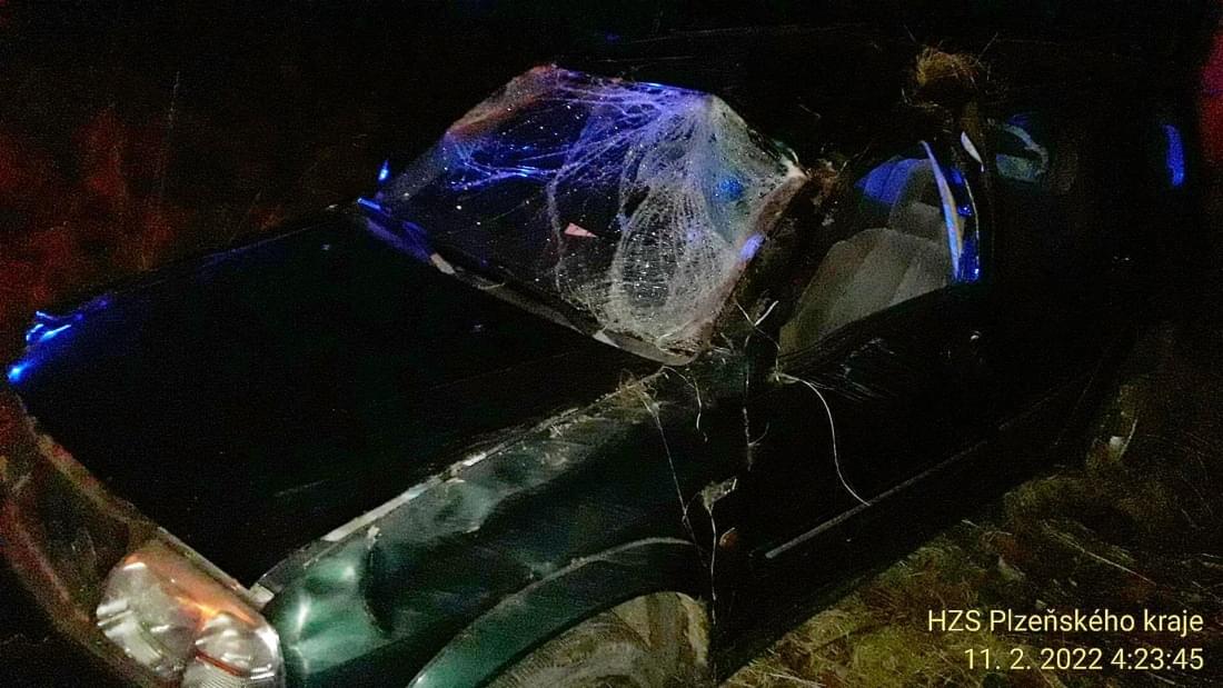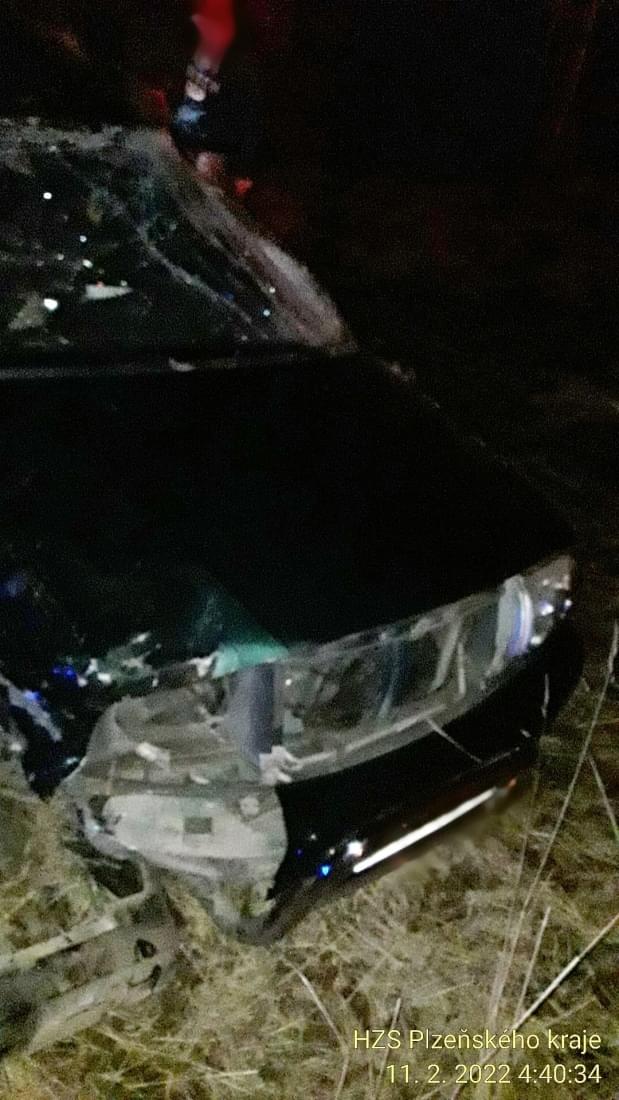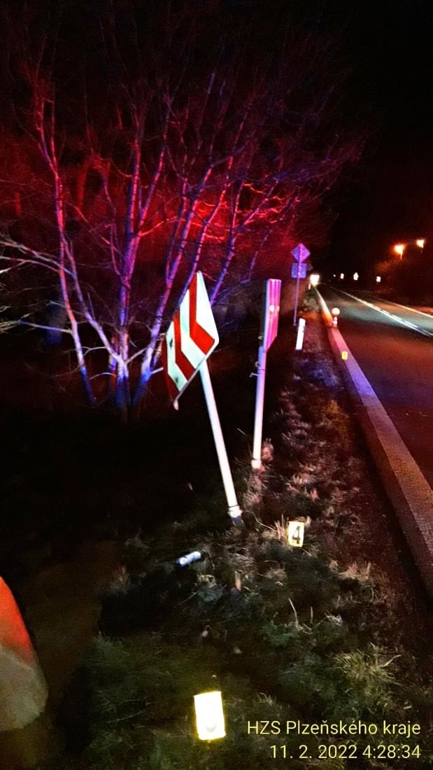 Dnes před čtvrtou hodinou ráno došlo mezi Klatovy a Vrhavčí na úrovni Běšin k havárii osobního vozu mimo silnici, kde narazil do několika dopravních značek a sloupu s panoramatickým zrcadlem.