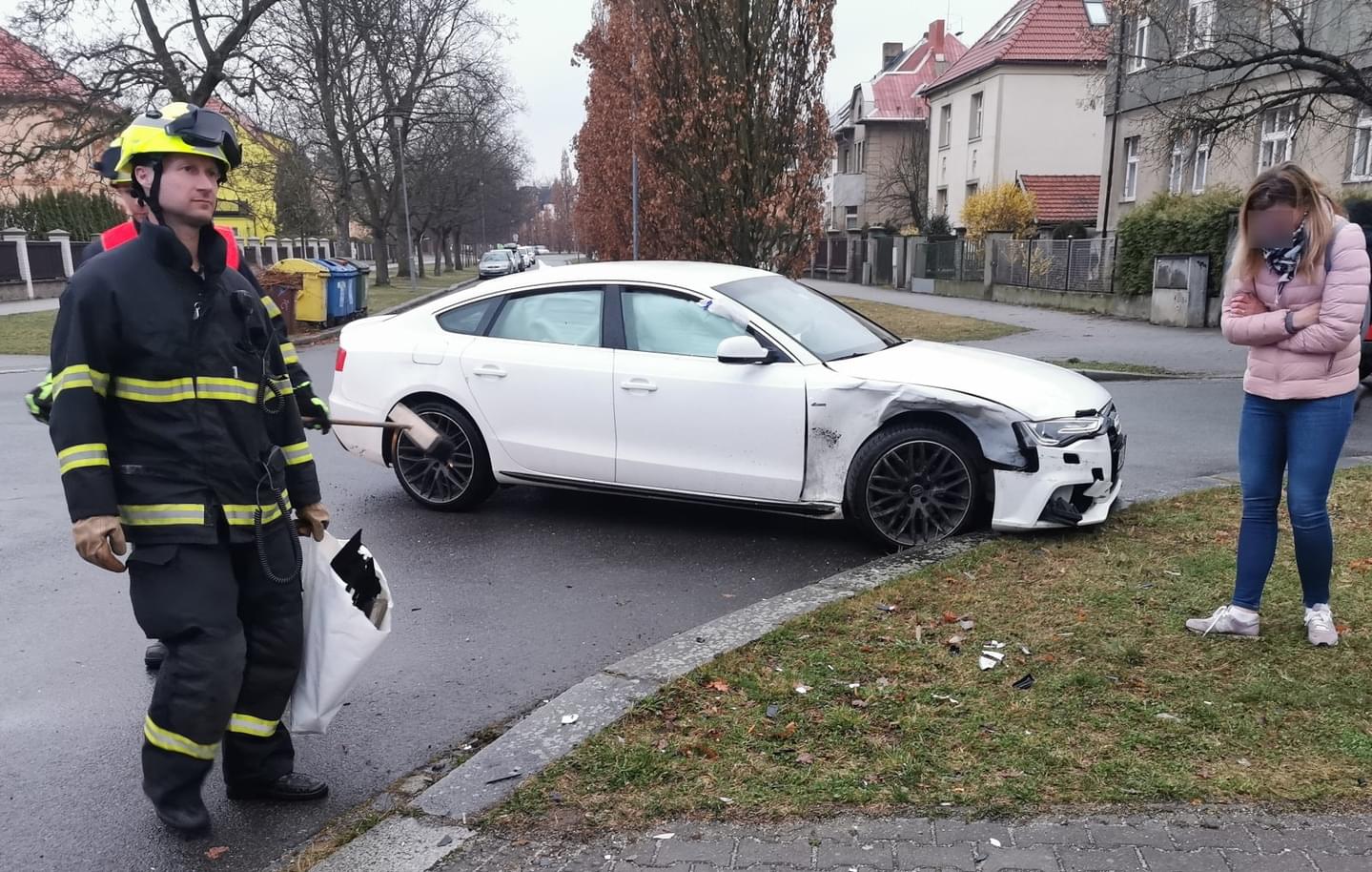 Jeden z vozů byl nárazem druhého odražen až na chodník