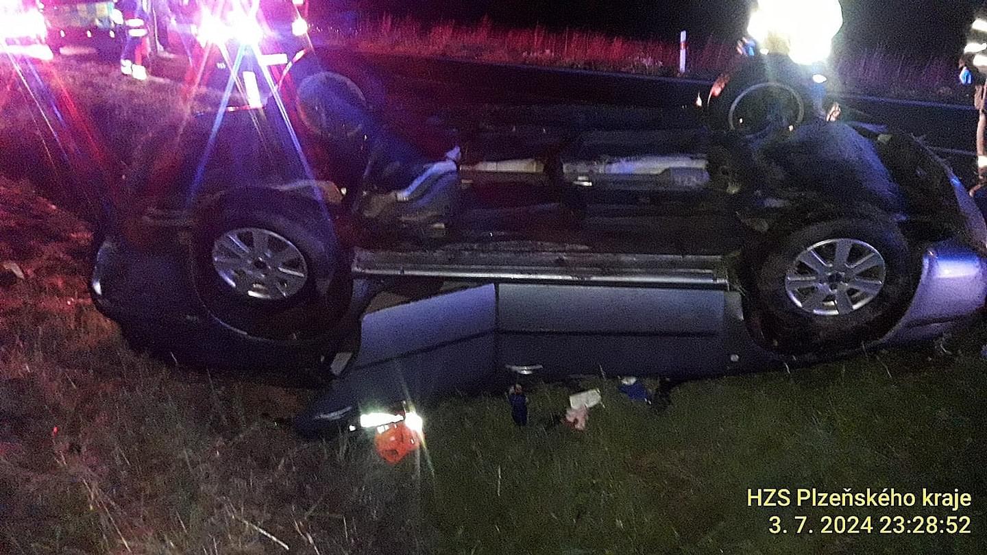 V noci na dnešek po jedenácté hodině došlo na silnici II/190 vedoucí z Klatov do Janovic nad Úhlavou k dopravní nehodě, během které se osobní vozidlo převrátilo na střechu.