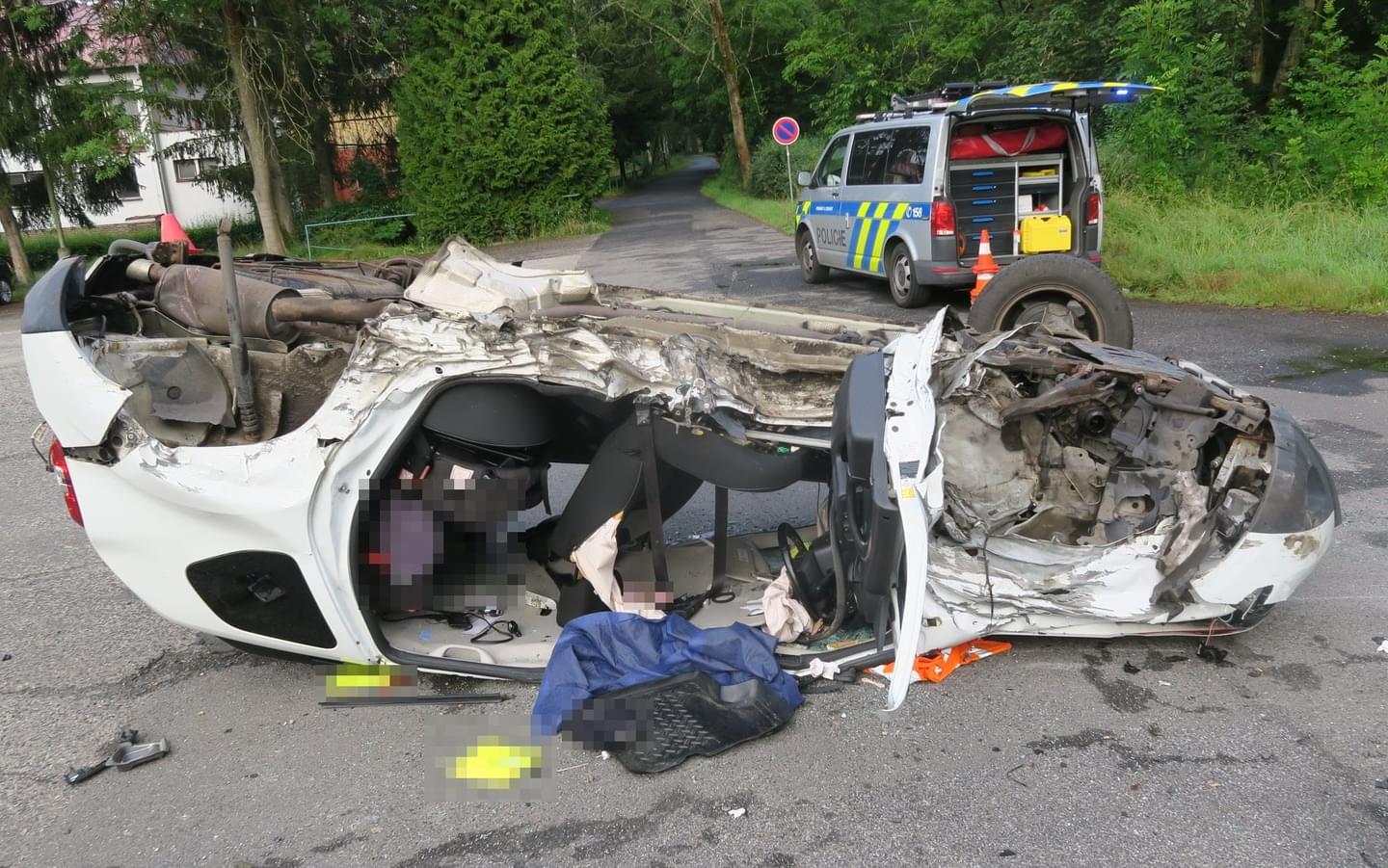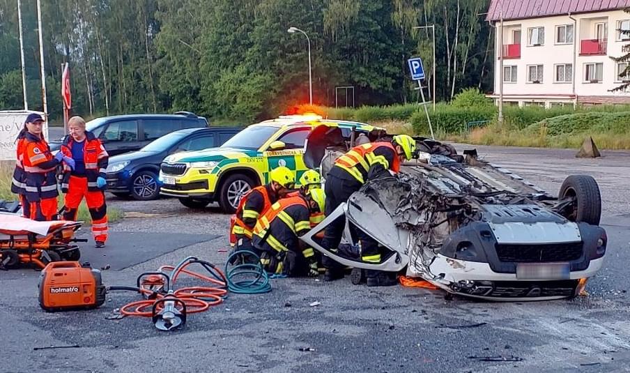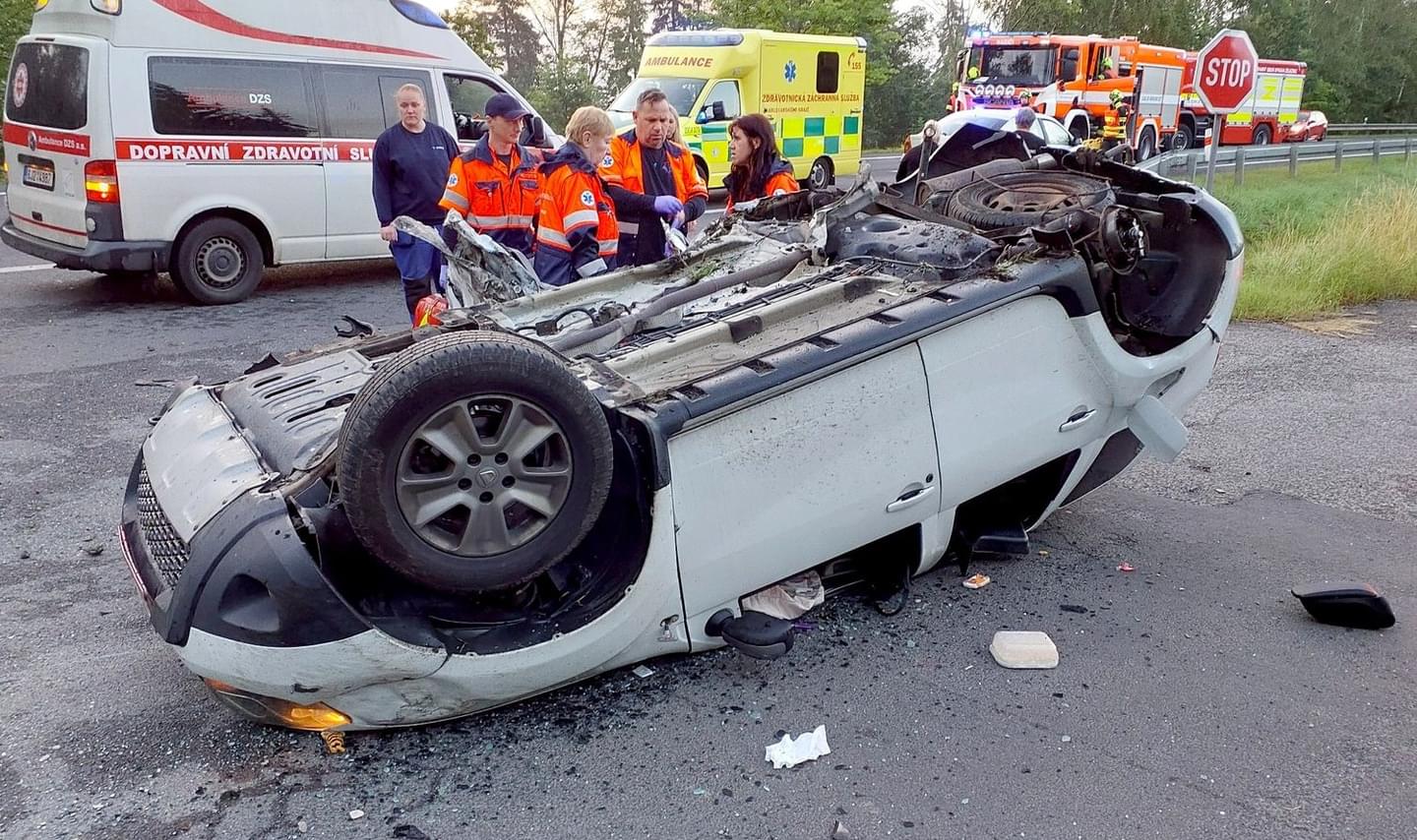 Při dopravní nehodě utrpěla šestačtyřicetiletá řidička převráceného vozu vážná zranění, se kterými byla letecky transportována do Fakultní nemocnice Plzeň Lochotín.