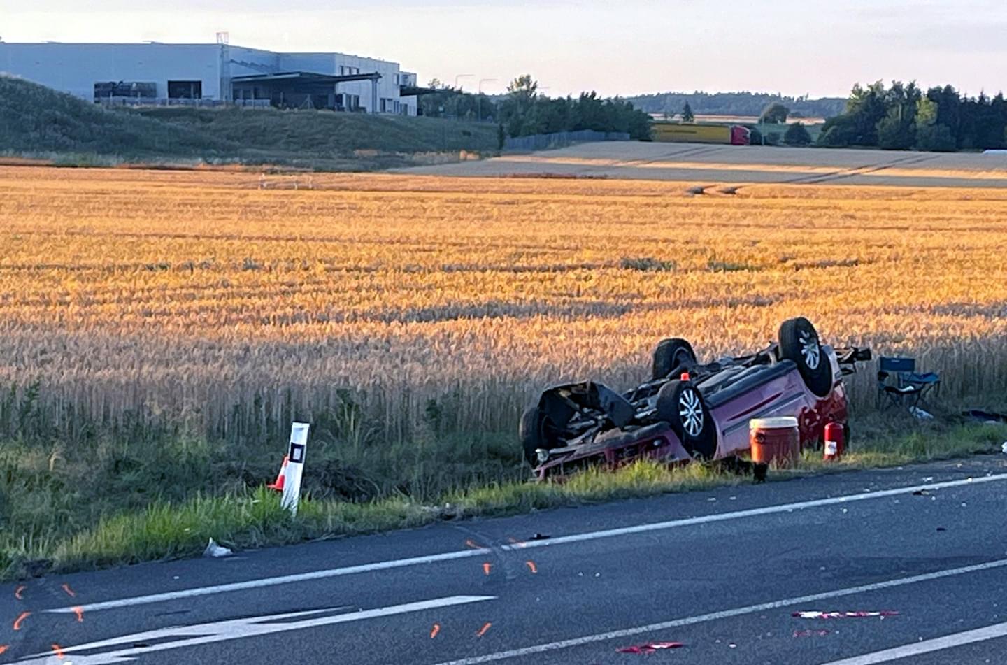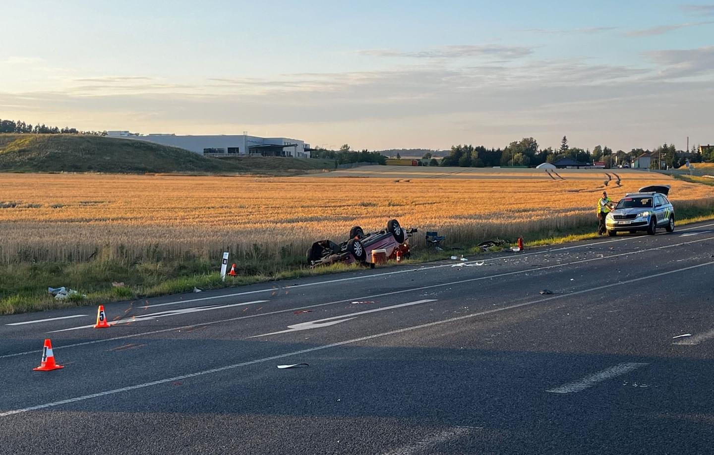 Včera večer v osm hodin došlo u Staňkova ve směru na Ohučov k vážné dopravní nehodě, během které se střetlo osobní vozidlo s kamionem, nárazem bylo vyraženo ze silnice a skončilo v příkopu na střeše.