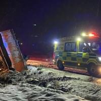 Dnes ráno před šestou hodinou došlo nedaleko Spáleného Poříčí k převrácení sypače. Na místo vyjely všechny záchranné složky.