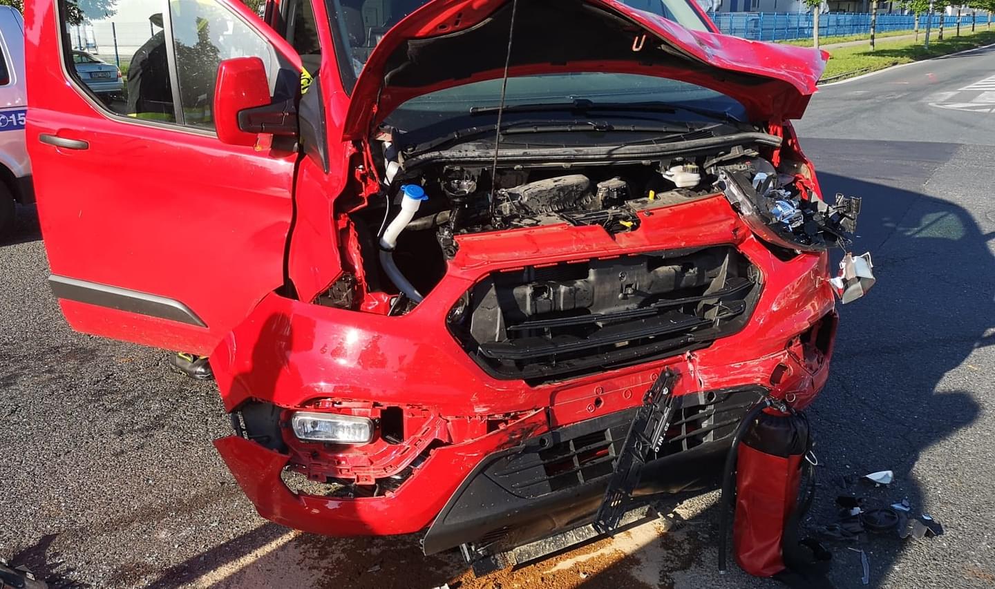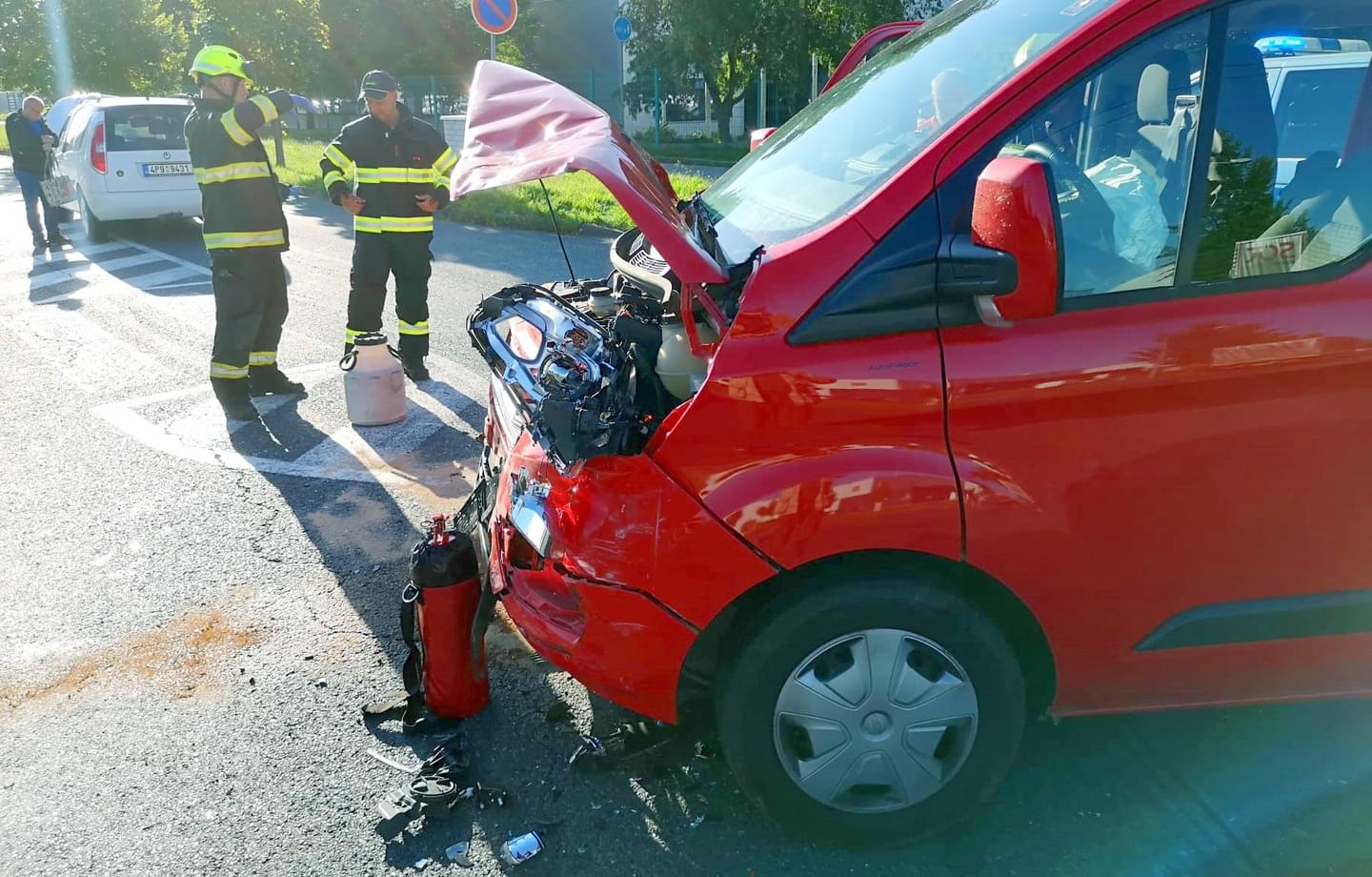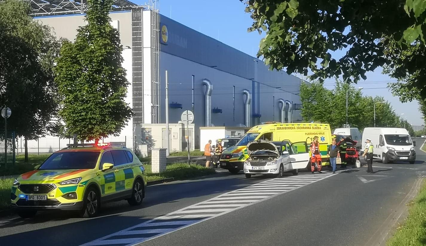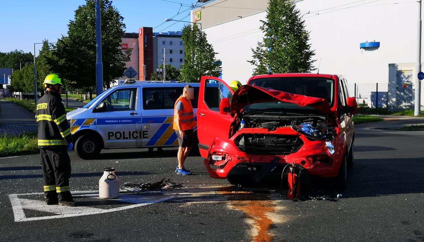 Dnes před půl devátou ráno došlo v Plzni na křižovatce U Nové Hospody x Podnikatelská k dopravní nehodě, při které se střetl osobní vůz s dodávkou.