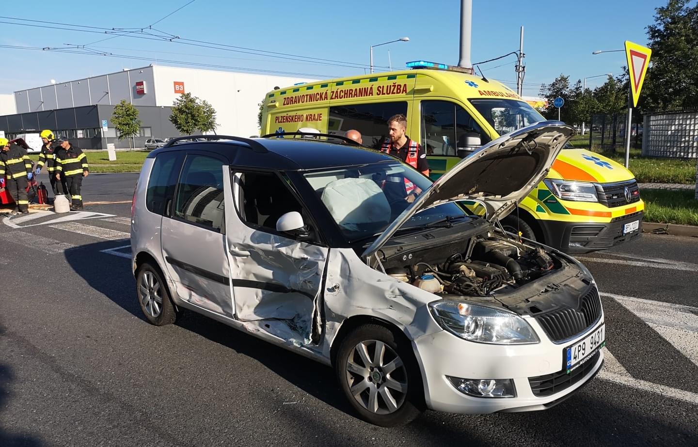"Dnes v 08:15 jel v Plzni v ulici Podnikatelská sedmasedmdesátiletý řidič s osobním vozidlem tovární značky Škoda Roomster. Na křižovatce nedal přednost v jízdě vozidlu tovární značky Ford Transit třiapadesátiletého řidiče a došlo ke střetu. Zranění utrpěla spolujedoucí žena z vozidla Roomster," doplnila tisková mluvčí policie..
