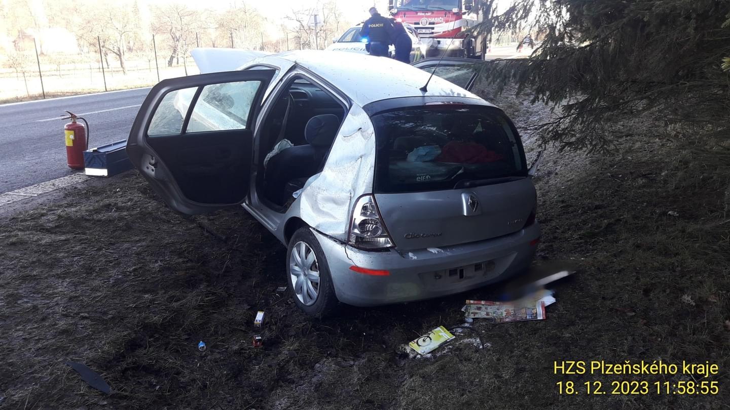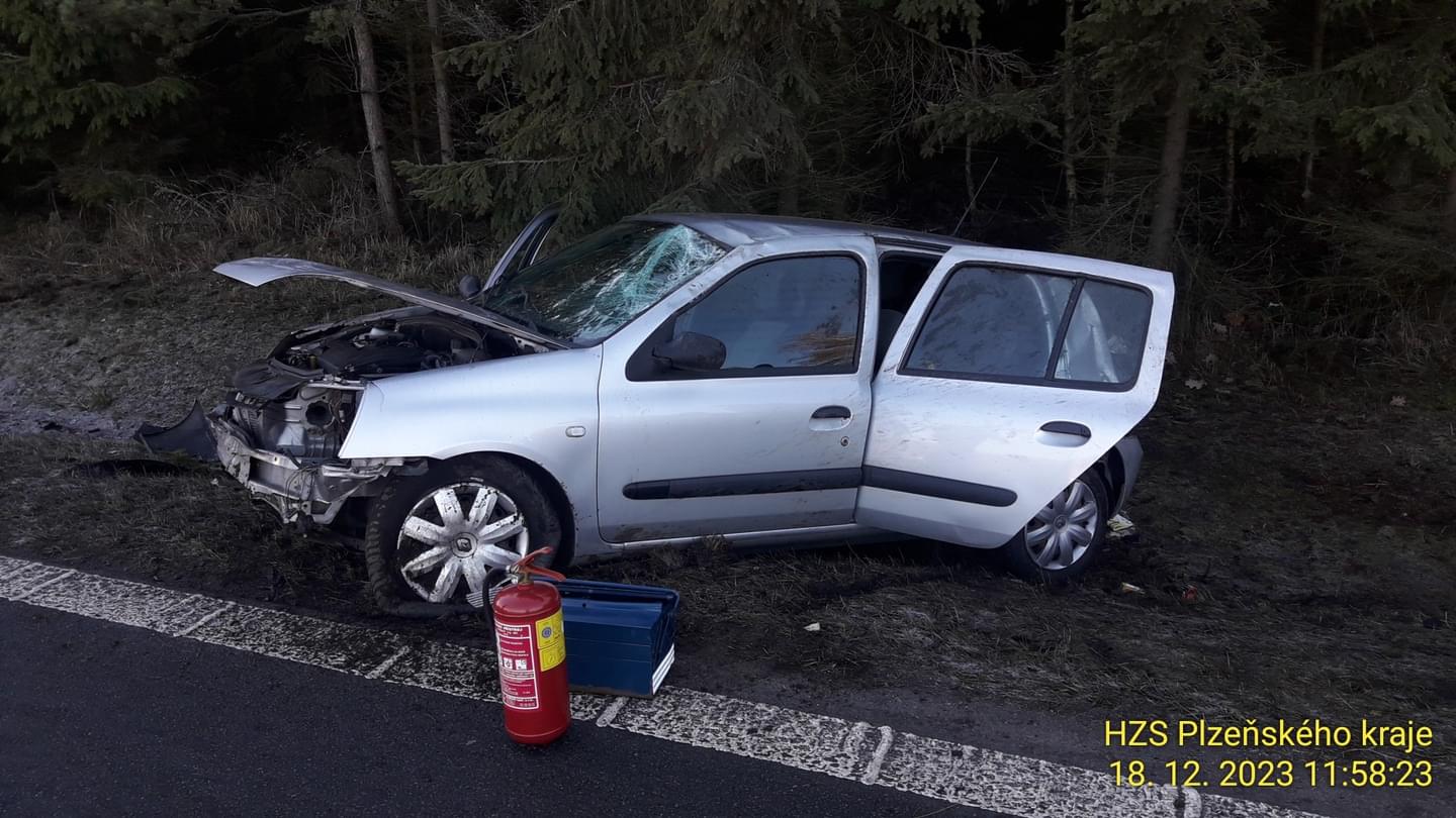10:39 Za Zručí-Sencem ve směru jízdy k Žichlicím havarovalo jedno osobní auto a skončilo mimo komunikaci na boku.