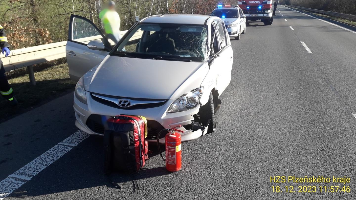 11:44 Na silnici 20/I na úrovni Chotíkova se střetlo nákladní a osobní auto. Vozidla jsou od sebe vzdálena několik set metrů. Jednu osobu z osobního vozu museli hasiči vyprostit společně se záchranáři.