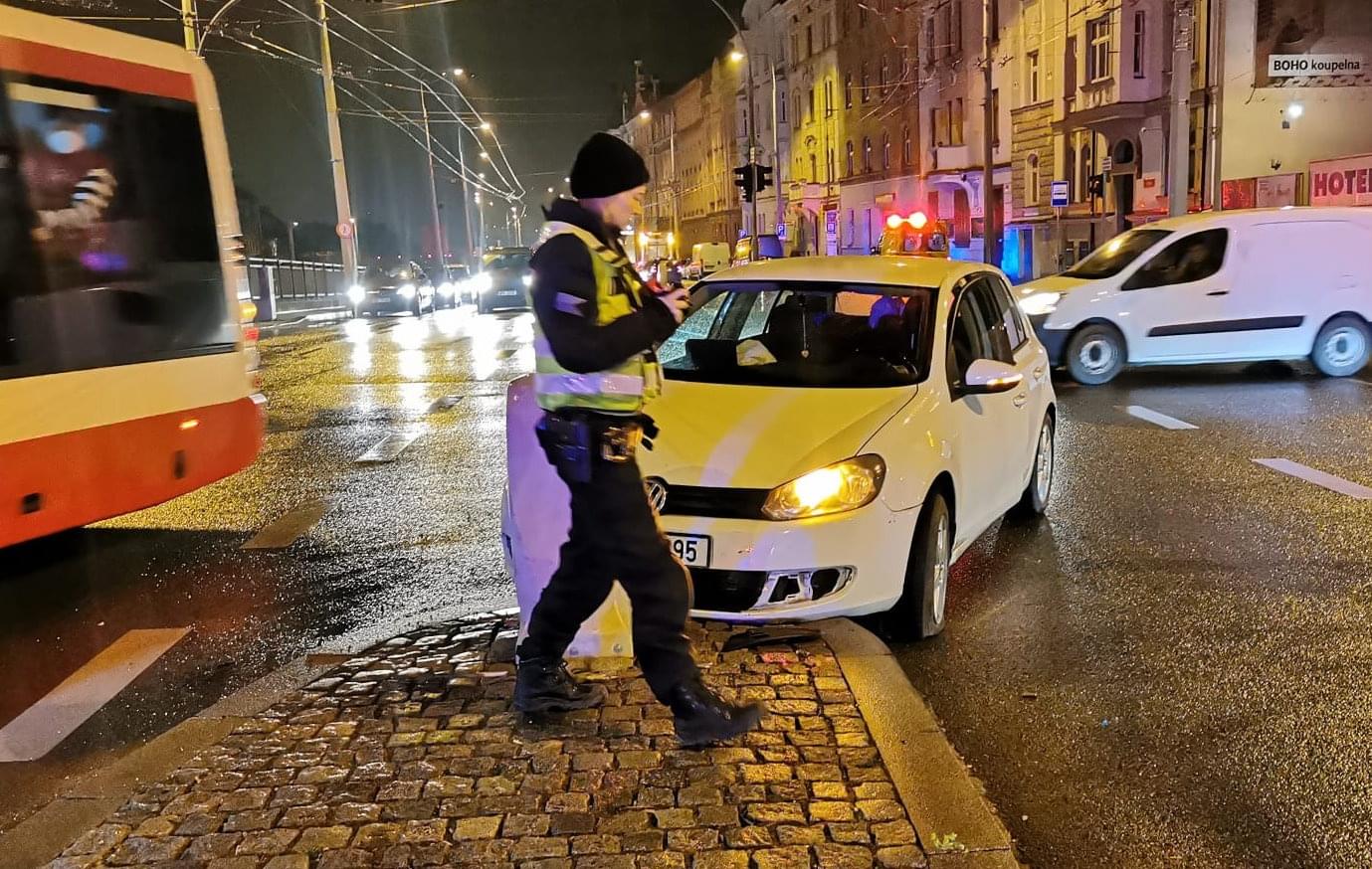 K první nehodě došlo po páté hodině ráno na křižovatce Borské a Němejcovy ulice, kde řidička s osobním vozem Volkswagen při průjezdu křižovatkou nezvládla řízení a narazila do dělícího ostrůvku.
