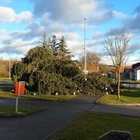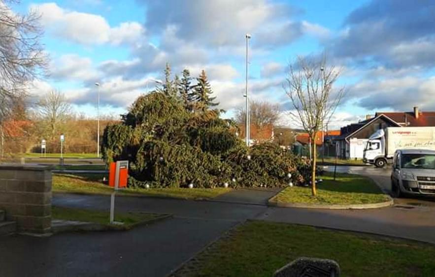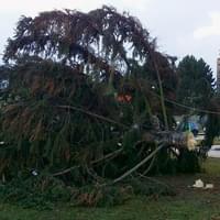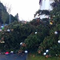 Dnešní vichr zlomil i vánoční strom v Křimicích