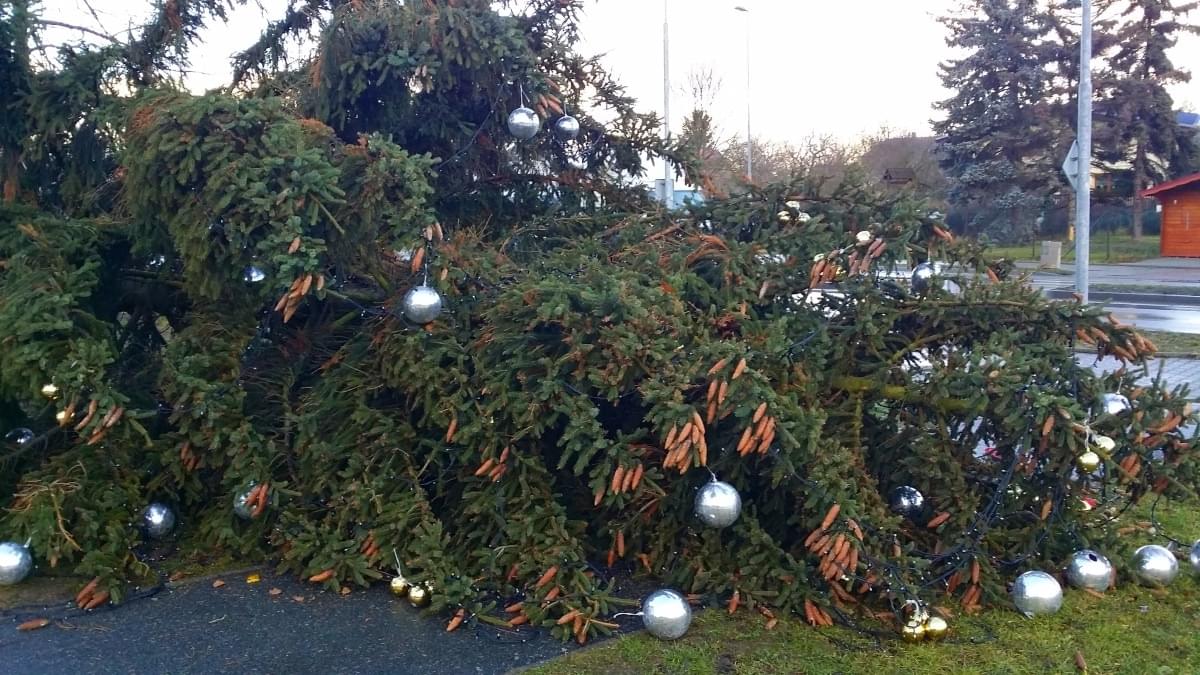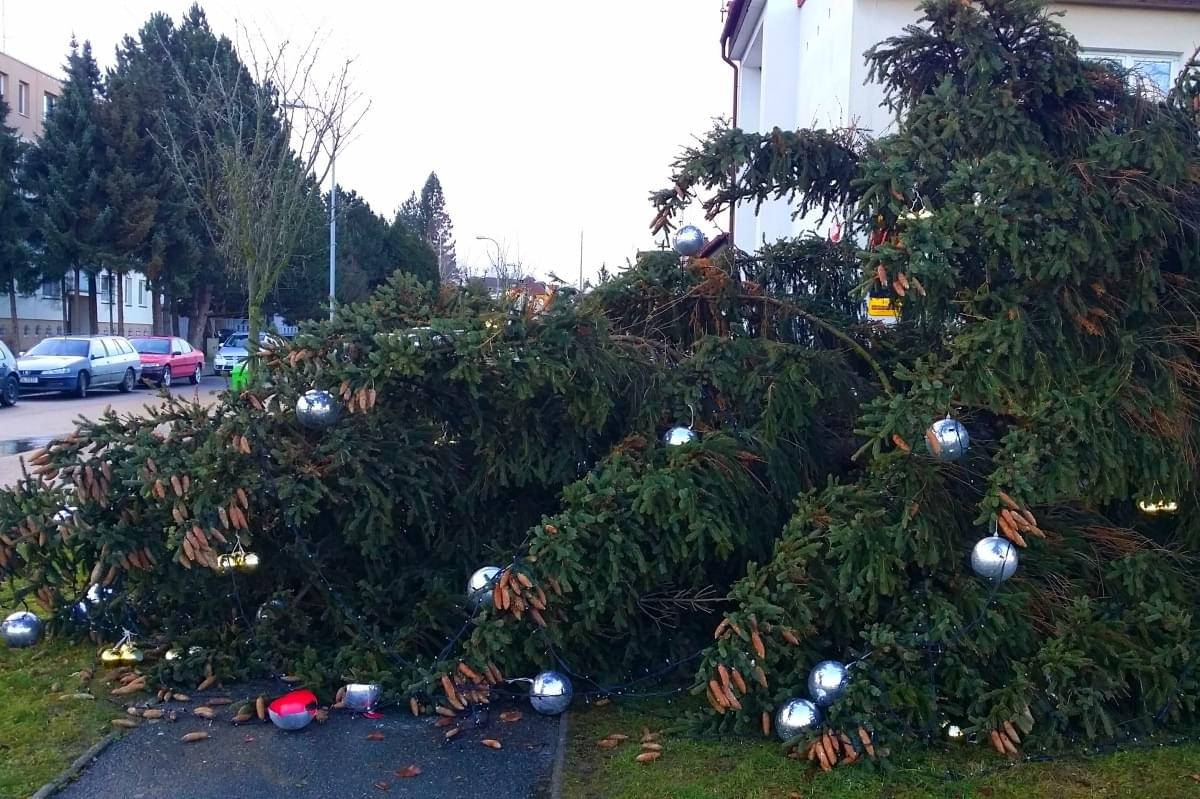 Po jinak frekventovaném chodníku naštěstí nikdo nešel, došlo tak pouze k poškození osvětlení a ozdob umístěných na stromě.