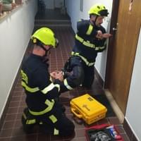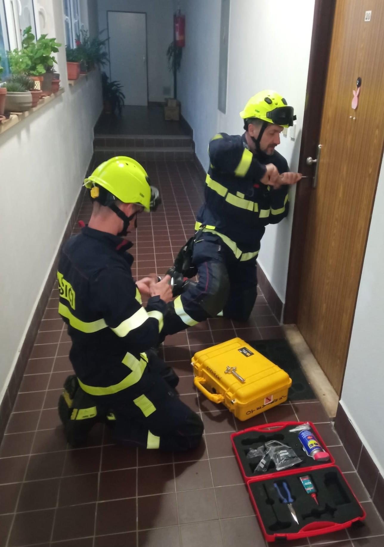 Asi po dvaceti minutách se podařilo oběma skupinám hasičů vstoupit do bytu, shodou okolností přesně ve stejný okamžik.