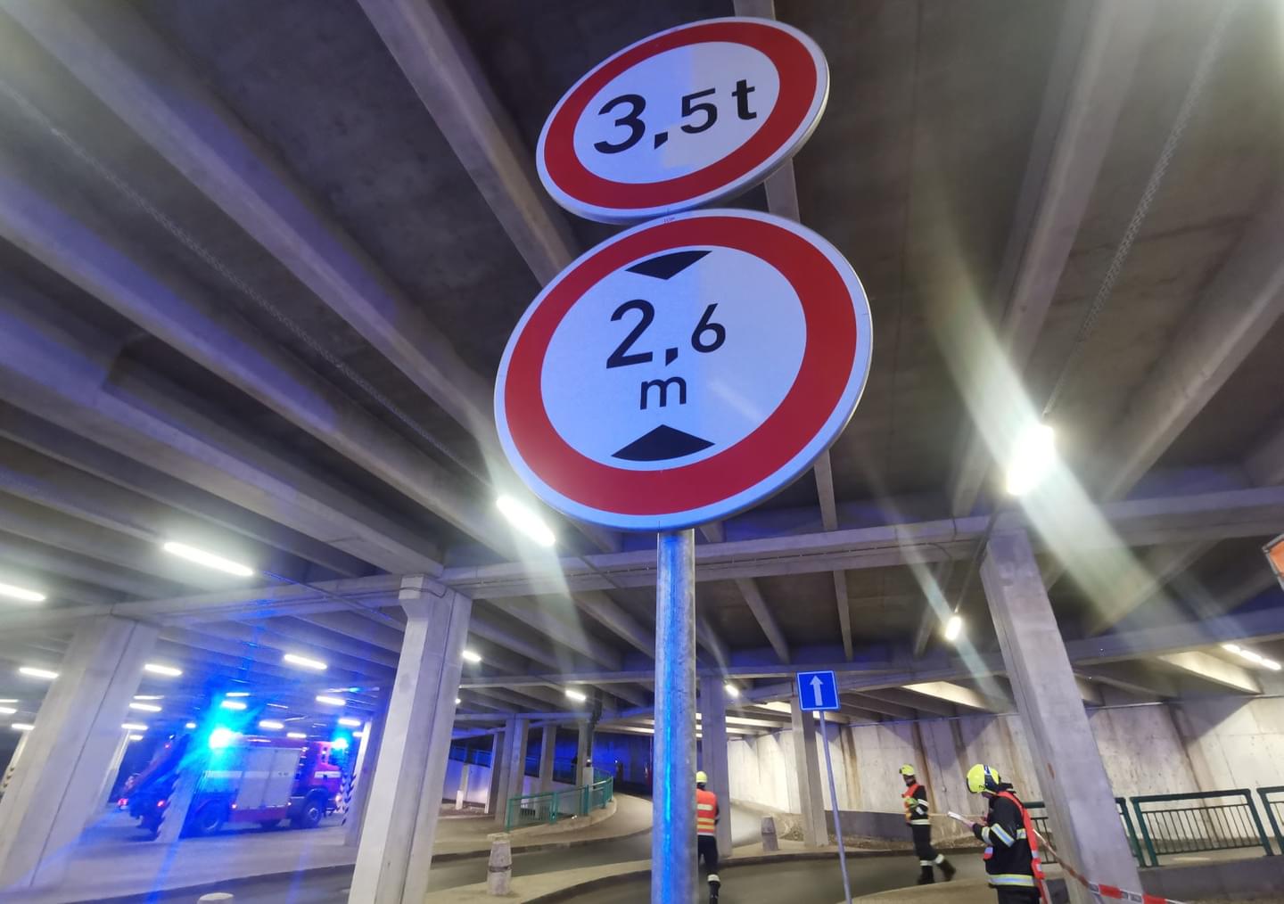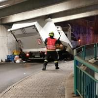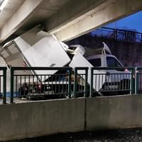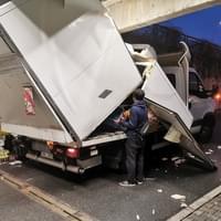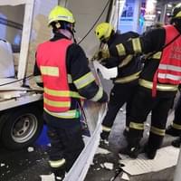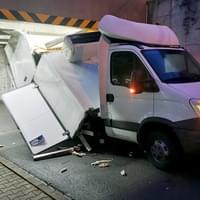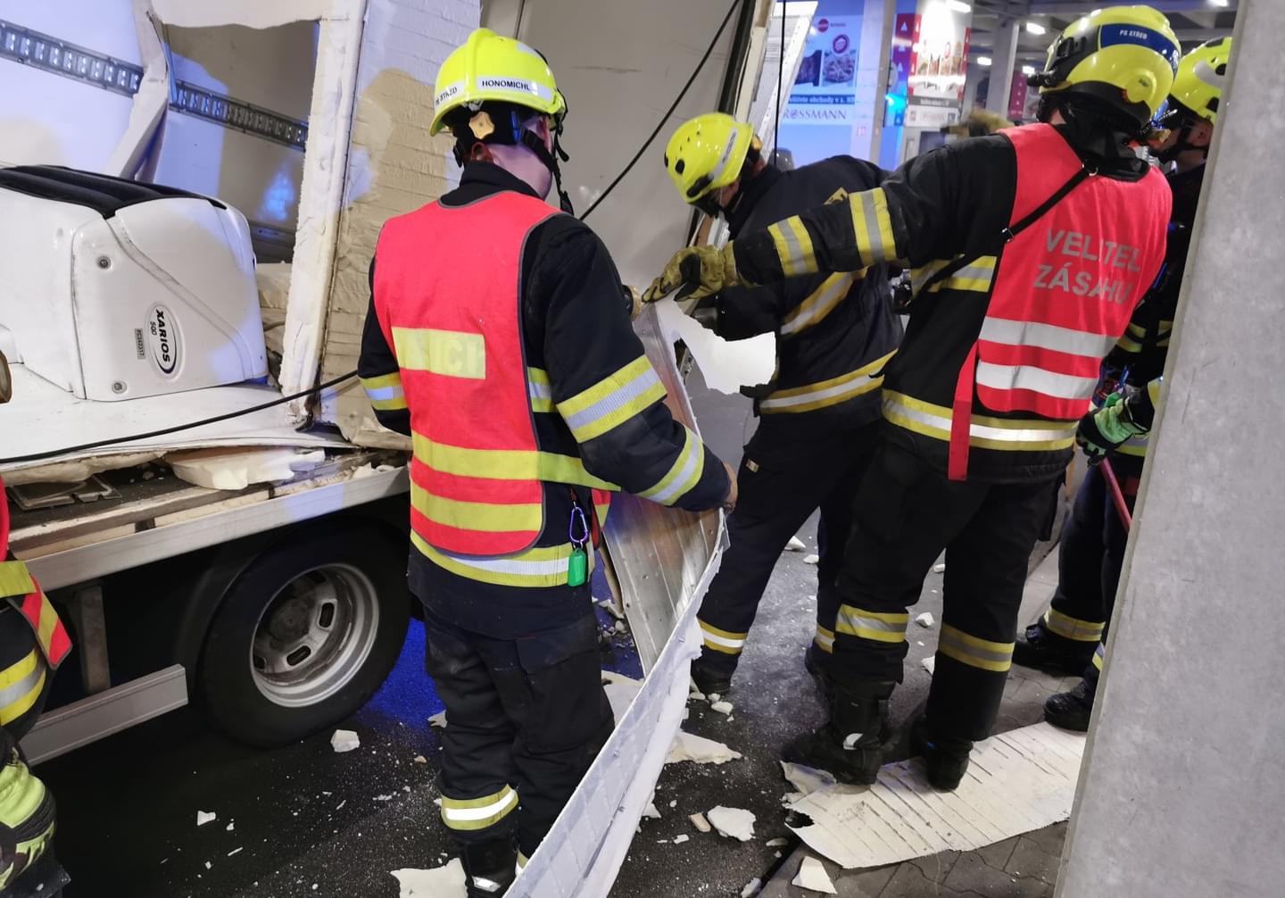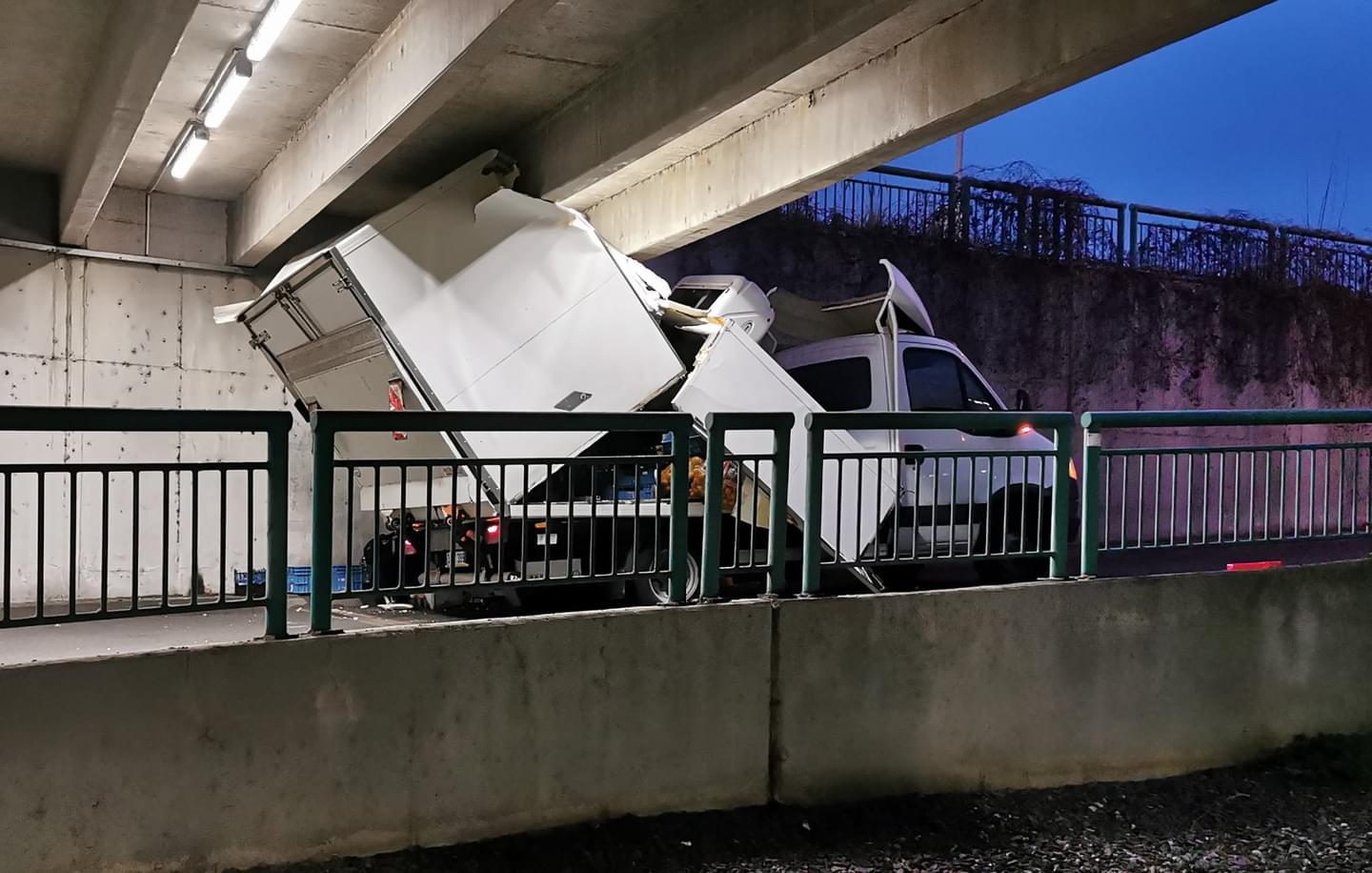 Následný náraz nástavby dodávky do pilíře ji pak zcela zničil a vozidlo na místě zůstalo zaklíněné. Nehoda se naštěstí obešla bez zranění. Na místo vyjeli dopravní policisté a hasiči, kteří zabezpečili místo nehody a po zadokumentování a zaprotokolování nehody policií vozidlo vyprostili a spustili zpět na parkoviště, kde následně museli zbytky nástavby rozřezat a rozstříhat.