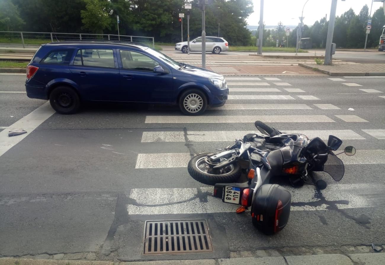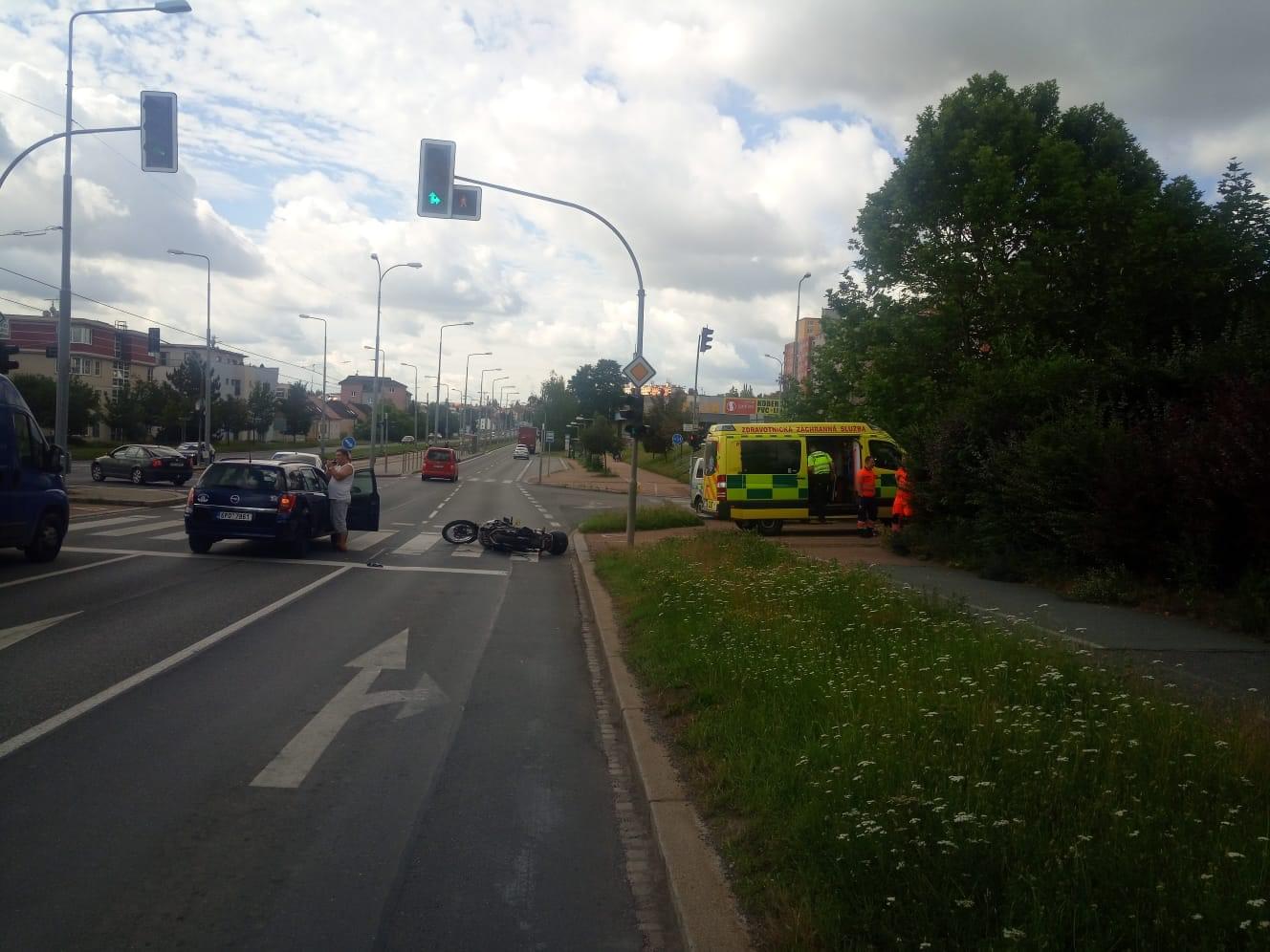 Dnes dopoledne po desáté hodině došlo v Plzni v Bolevci na křižovatce ulic Plaská a Okounová ke střetu osobního vozu a motocyklu. K nehodě vyjeli hasiči, záchranáři i policie.