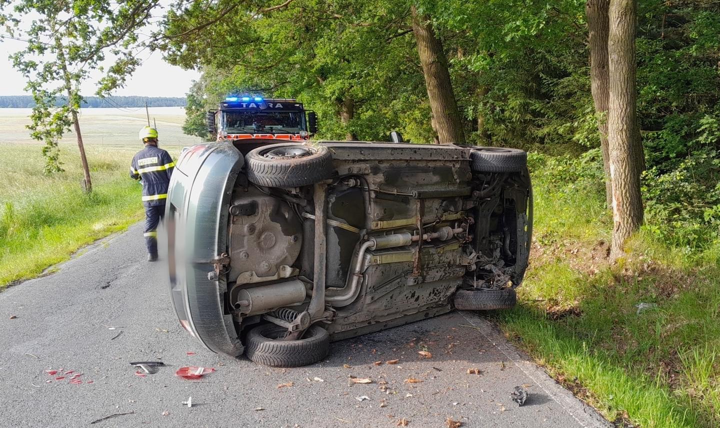 Dnes před sedmou hodinou ráno došlo na silnici mezi Horšovským Týnem a Velkým Malahovem u Ostromečského rybníka k dopravní nehodě, během které se osobní vozidlo převrátilo na bok.