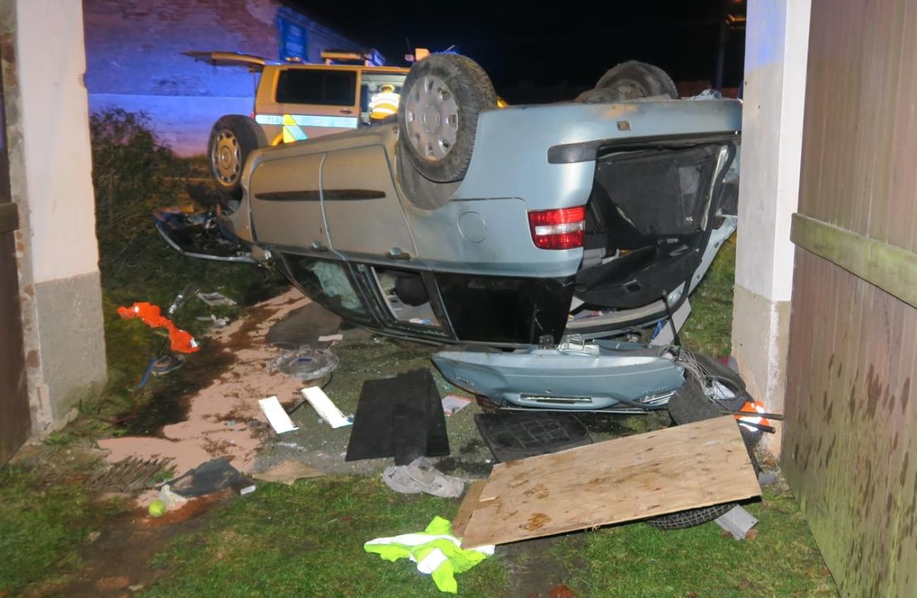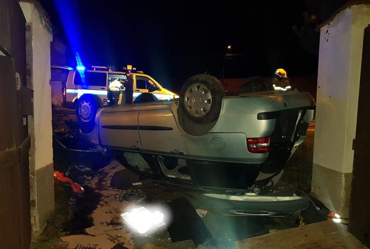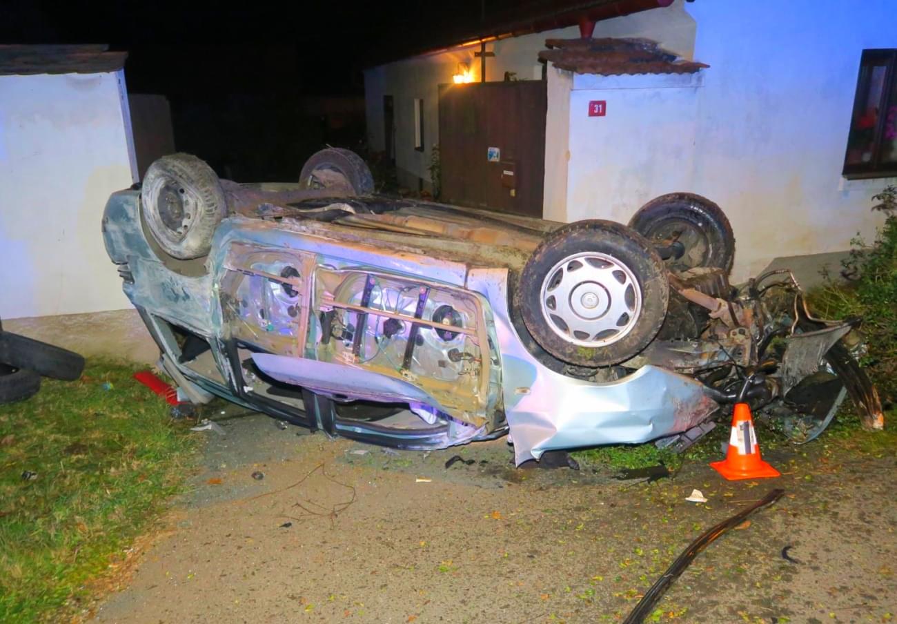 Vozidlo vyletělo mimo komunikaci, kde prorazilo zděnou zeď domu, poté se odrazilo do prostoru mezi jiným domem a krajnicí, kde se převrátilo a nakonec zůstalo ležet na střeše ve vjezdu do dalšího domu. Řidič po dopravní nehodě z místa utekl a pak odjel v jiném autě směrem na obec Křenovy.
