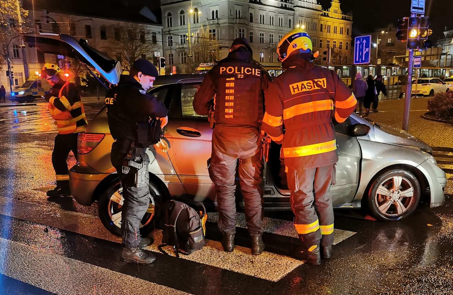 Řidič Mercedesu již nedokázal střetu zabránit a došlo ke střetu obou vozů. Vzhledem k pozdní noční hodině nebyly v době nehody na křižovatce semafory v provozu.
