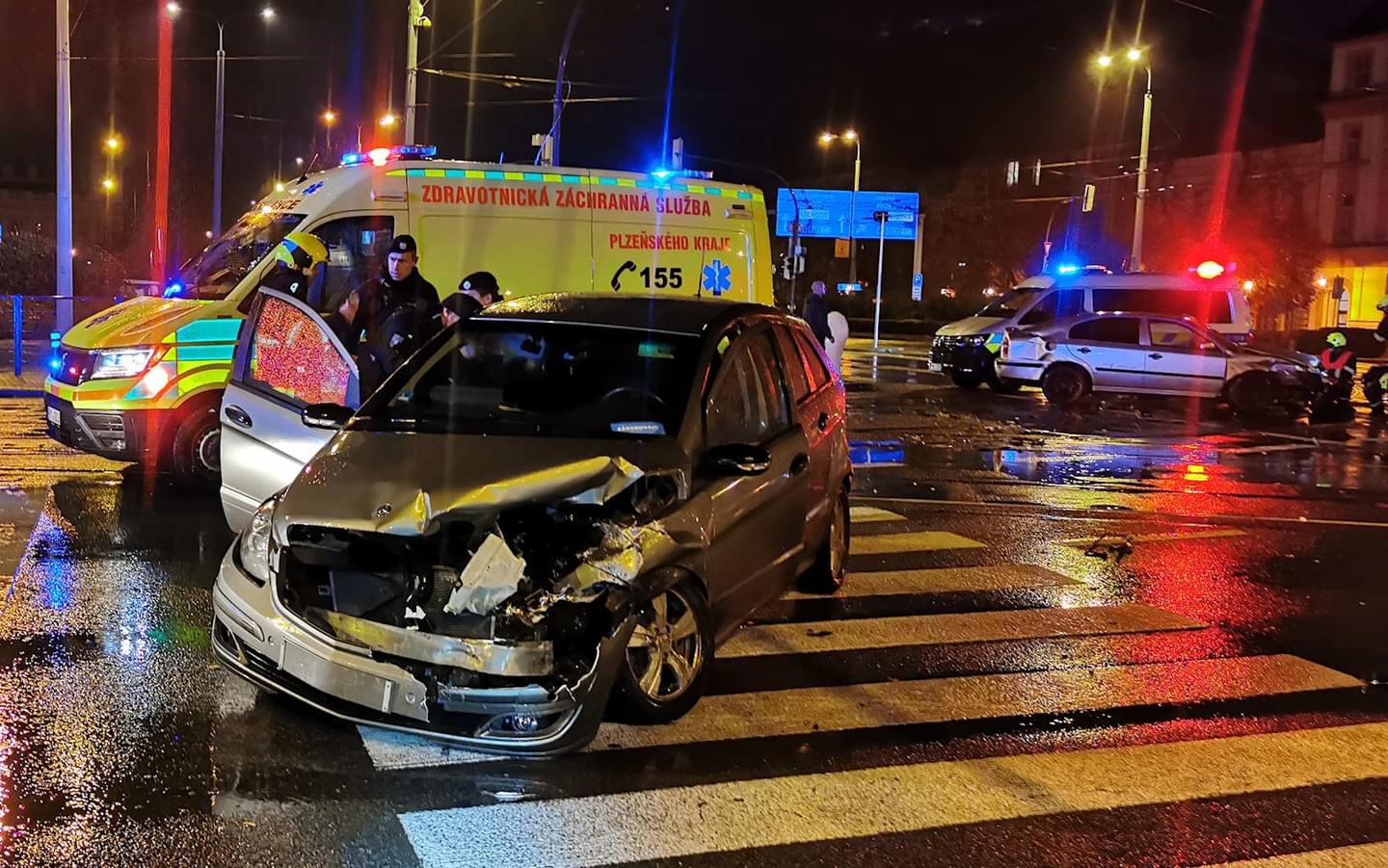 Podle informací z místa k nehodě došlo tak, že řidička jedoucí ve voze Škoda po Klatovské třídě z Bor chtěla u hlavní pošty odbočit doleva k Novému divadlu a dle všeho nedala přednost vozidlu Mercedes jedoucímu rovně do sadů Pětatřicátníků od Lochotína.