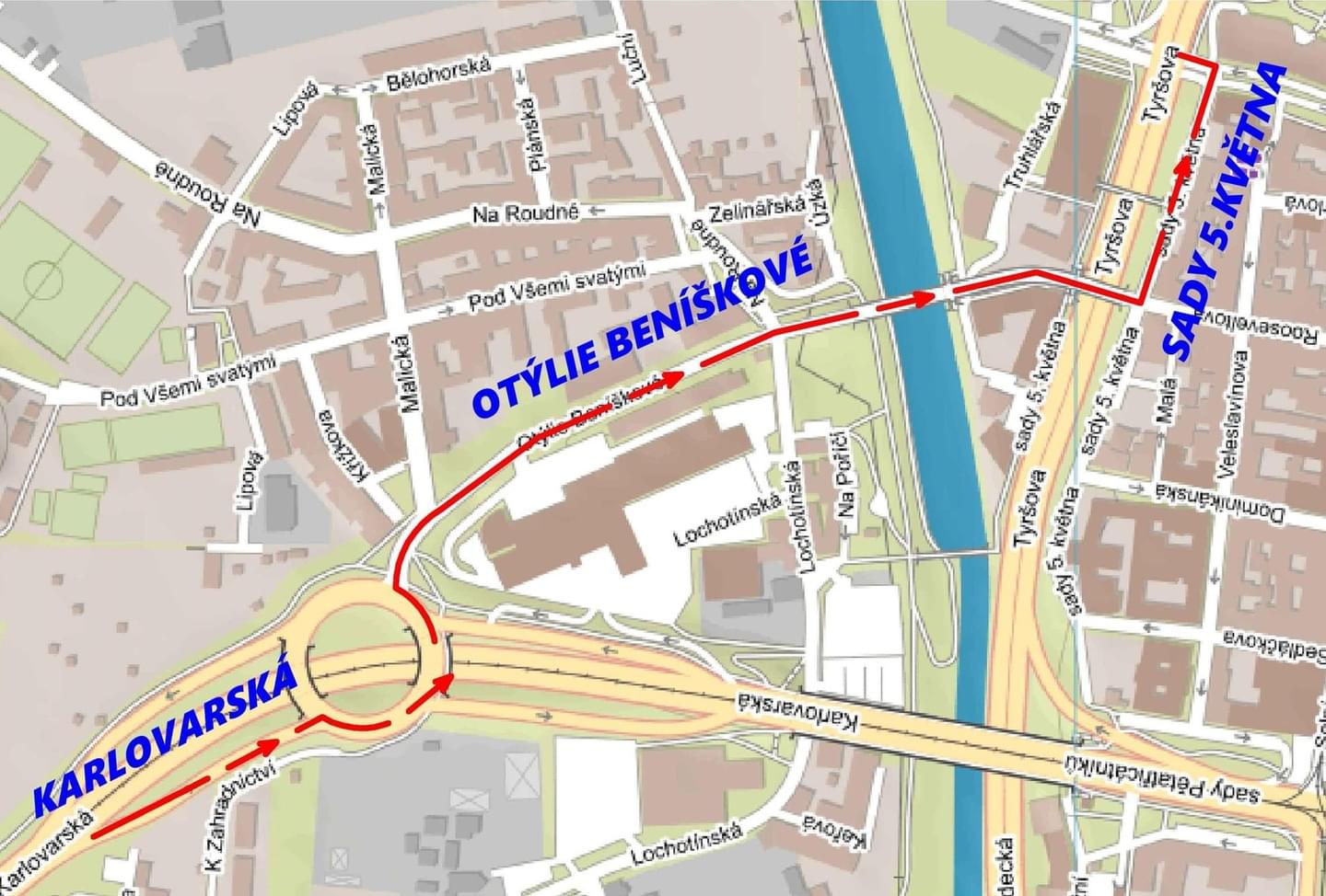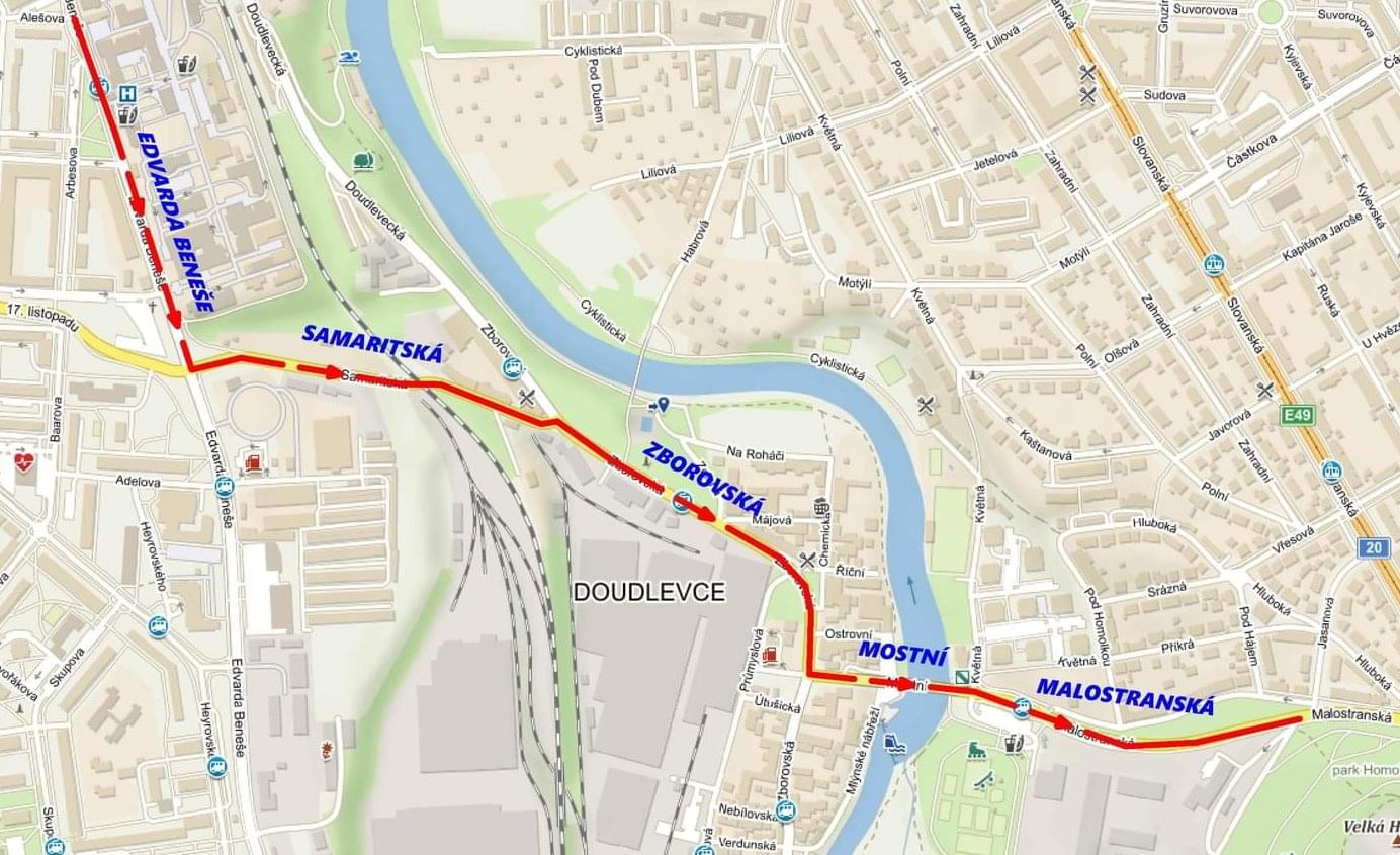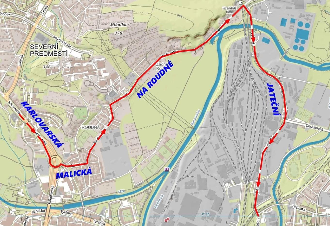 Linka č. 1 bude ve směru z Bolevce nahrazena autobusovou dopravou a pojede do konečné stanice Rondel. Ve směru ze Slovan bude konečnou stanicí Anglické nábřeží, stejně jako u linky č. 2. V opačném směru ze Skvrňan bude linka č. 2 končit ve stanici Palackého náměstí.