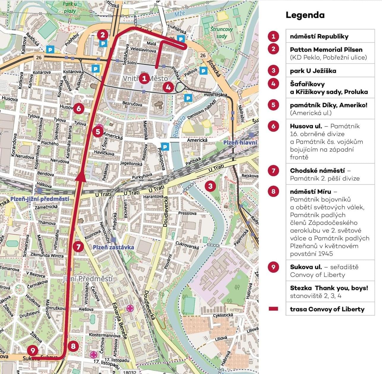 Vzpomínkový akt u pomníku Díky, Ameriko! v pátek 6. května uzavře pro veškerou dopravu včetně MHD od 15 do 19 hodin Americkou třídu v úseku Klatovská tř. – Jungmannova.