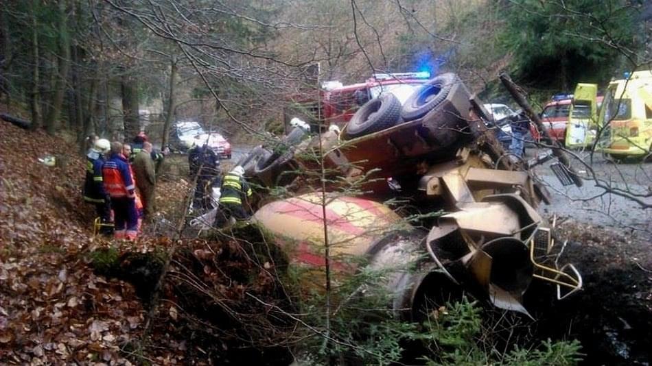 Samozřejmě jsme tedy zjišťovali, zda a kdy se řidiče podařilo zachránit a jak na tom nyní je. Po nehodě se domíchavač položil na bok, sklouzl níž a zmáčkl kabinu tak, že zcela zaklínila řidičovy nohy.