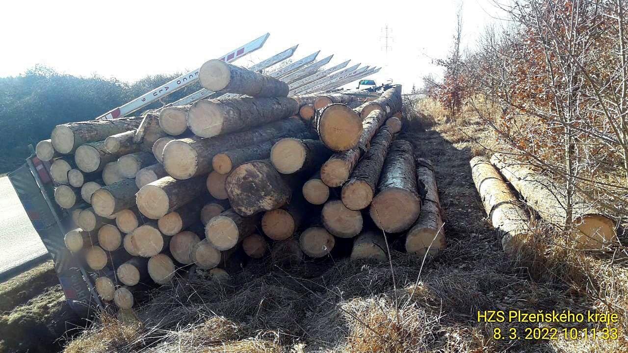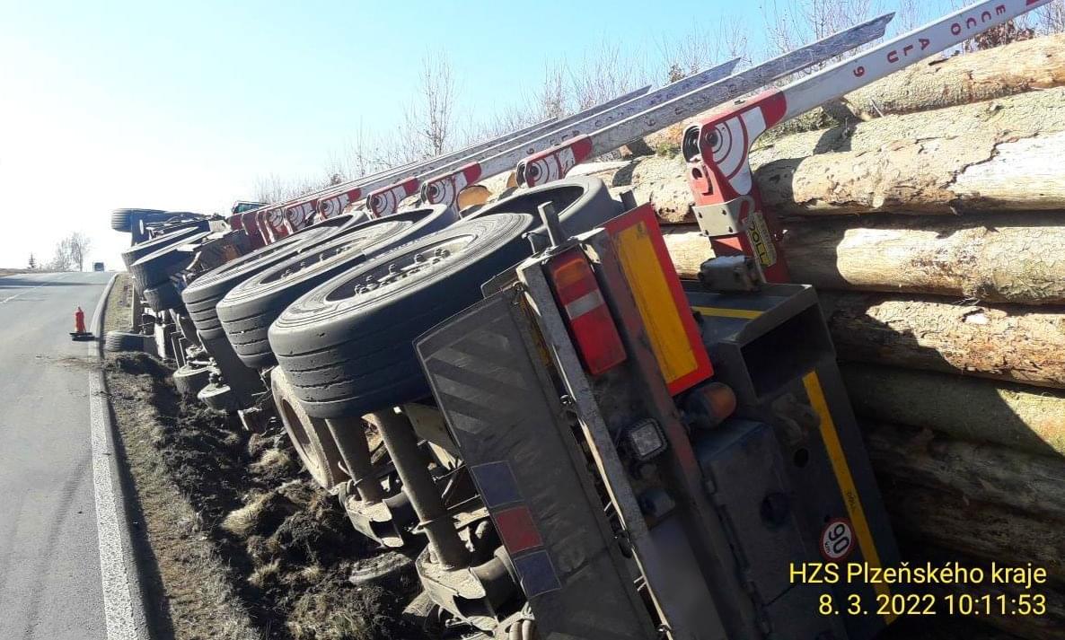 K další nehodě, při které se převrátil přívěs s kulatinami, došlo v pátek: