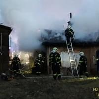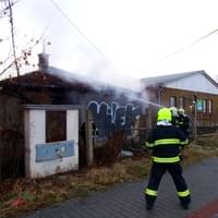 Požár domku u čerpací stanice likvidují hasiči několik hodin