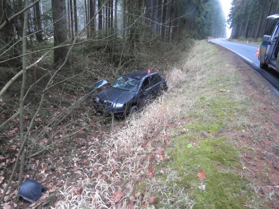 K havárii osobního vozu Škoda došlo v sobotu 19. prosince i u Aše. "Třiačtyřicetiletý muž z Aše zřejmě nepřizpůsobil rychlost stavu a povaze vozovky a při projetí levotočivé zatáčky dostal smyk, přejel do protisměru a následně mimo pozemní komunikaci," popsal tiskový mluvčí policie.