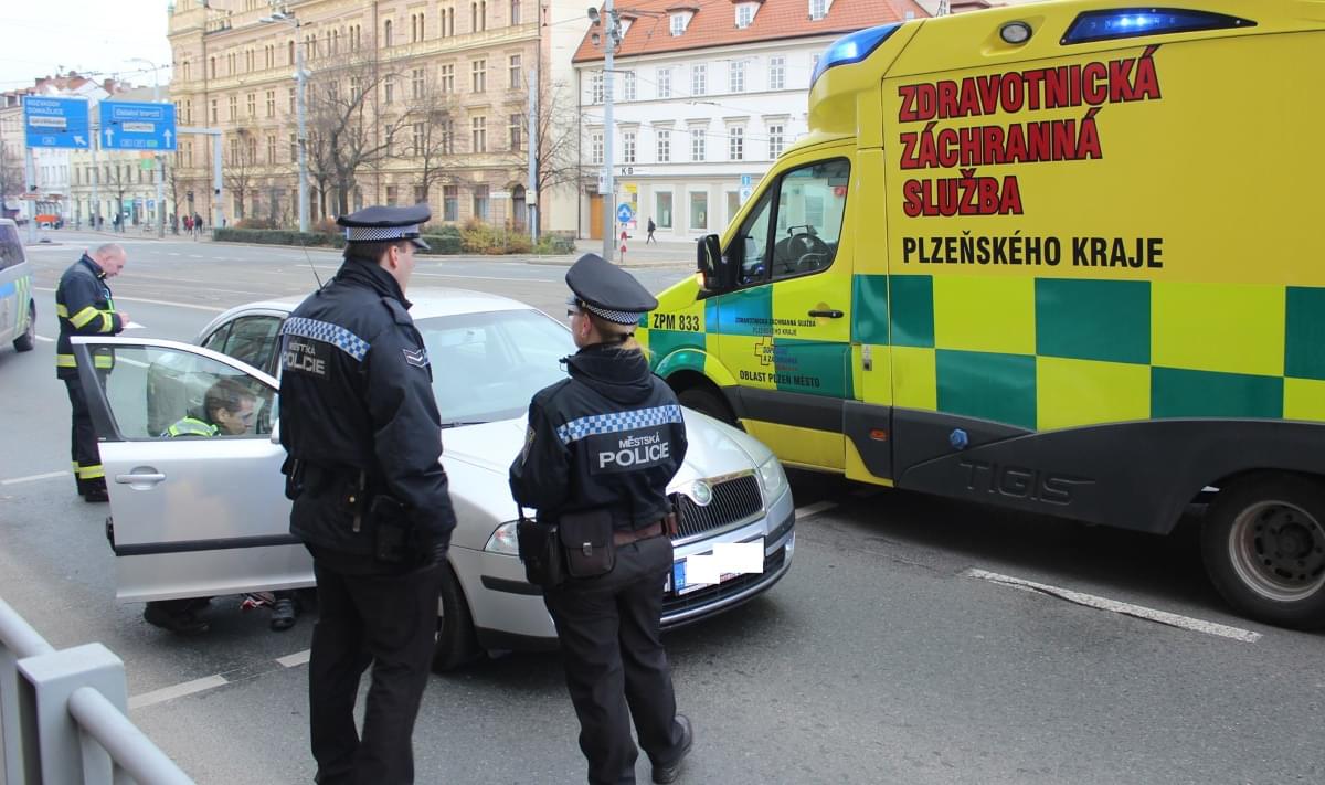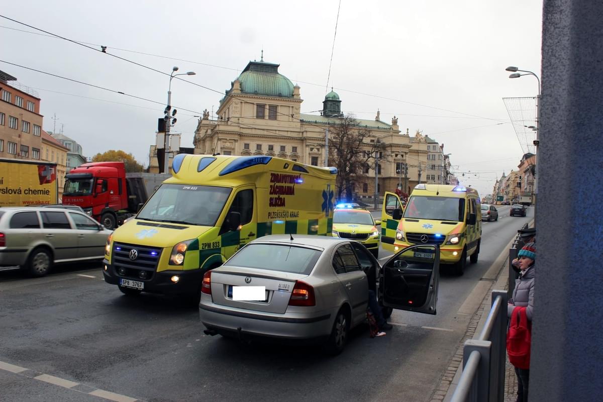 K dopravní nehodě, při které osobní vůz Škoda Octavia jedoucí směrem na Bory srazil na přechodu dva chodce, došlo před Velkou synagogou na Klatovské třídě v Plzni.